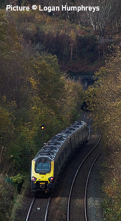 ![]() The Rail Head Treatment train with unusual power passing Towyn's caravans on 27 November. Picture by Gary Thomas. The next issue wil appear on the evening of Tuesday 10 December. News picturesRHTT Variety Monday 25 November saw the usual Class 56 traction 56 090 and 56 113 , but 56 113 then disappeared for tyre turning and unusually we had a 66 : 66 846 for a couple of days, this was replaced by 56 105 on Thursday and Friday. ![]() 66 846 is seen passing Sandy Lane crossing, Prestatyn at the rear of RHTT 3S71 on 26 November. ![]() By 28 November the usual has returned: 56 090 approaching Sandy Lane crossing with 56105 on the rear New Measurement Train ![]() The periodic (as in ‘once per [NR] period’) visit from the New Measurement Train took place last Thursday, and it was pretty much the same formation as 8 weeks ago, only with 43 272 leading as the train ran out to Holyhead. The consist is 43 272, 72612, 975091, 72 631, 6262, 43 357. The picture is from Bagillt: it's good to see that the shrubbery has now been felled (Russell Withington) ![]() The train was 1Q30 10:54 Derby R.T.C.(Network Rail) to Crewe (via Holyhead) with 43 257 leading passing Sandy lane, Prestatyn on 28 November (Ivor Bufton). The redundant signalbox appears in good condition; is it used for anything? Cambrian 197s ![]() Cambrian-line bound 197s continue mileage accumulation runs along the coast with 197 028 being the latest, seen leaving Rhyl on 28 November (Ivor Bufton). ![]() Conwy, with the return 3Q71 11:20 Holyhead to Crewe test working passing through Robert Stephenson's modification town walls. (Garry Stroud) New Trains and a new bridge ![]() 191 115 on 1D33 08:25 Manchester Airport to Llandudno calls at Flint on 30 December (Tim Rogers). Works continue on the new accessible footbridge; efforts have been made to blend it into the style of the LNWR old bridge, which will be retained and is part of the conservation area, but some local residents are unhappy although the Council have approved. Sometimes heritage and accessibility can't be fully combined. The replica LNWR 'running-in board' - happily these are appearing on many ex-LNWR stations recently. ![]() 805 009 with 1A34 08:48 Holyhead to London Euston and the old LNWR-style bridge which is in good condition after some repairs in recent times. PointsContrary to a comment in the last issue, we are told that loco 70 815 has been on the Coast line several times, albeit on engineering works, as early as 21 June 2020. Not all the fleet have been here, though: 70 804 and 70 813 has yet to visit. Another recent query relates to the diversion of the Cardiff - Manchester via the Styal line avoiding Stockport. TfW passenger trains trains do not normally use the Manchester Airport - Wilmslow section, and drivers need to have regular refreshers on any route to be allowed to use a line. However, the answer is simple: the 5V33 05:13 empty stock from Crewe to Manchester on Mondays only and the 5K23 20:24 empty stock from Manchester - Crewe most weekdays, run that way. There are also paths for three (occasional?) Sunday morning passenger workings which might provide a photo opportunity. Thanks to Jack Bowley for help with these items. Out and about![]() Stockport on 27 November: 390 001 with the "bee" love heart, on 1H65 10: 33 Euston to Manchester Piccadilly as 67013 waits in platform 2 with the 1v42 12:30 Manchester to Cardiff. The train had arrived Manchester 17 minutes late, but due quick work by the staff at PIccadilly, the train was just 5 minutes late at Stockport (Stuart Broome). ![]() The 12:32 6E17 Liverpool - Drax double header with 60 026 and 60 056 approaching Ashley, 30 November (Greg Mape). A unit from Network Rail ![]() These people having enjoyed a trip to Llandudno on 19 November comprise the 'North Wales Railway' or 'Unit' which was launched in the town, with colleagues from the three organisations getting together across two days to work collaboratively on ways to improve the railway in North Wales. The text says (visit the NR website for the full story): 'The new local railway unit broadly covers the area served by the North Wales Coast and Conwy Valley Lines – and will draw on the experience and ideas of those already working in the area, notably the frontline staff who work on the track, trains, and stations in North Wales. 'The primary aim is to regularly bring together local teams – from across organisational boundaries – and give them the tools and support they need to deliver benefits for the local area, with passengers and staff alike ultimately benefiting from the collaboration.' Looking from outside, one wonders why should this should not have been doing as a matter of course, Anyway, good luck to them. Perhaps they could include one of two representatives of the passengers? Aberystwyth to Carmarthen: book review by Barrie Hughes![]() The book also covers the Newcastle Emlyn and Aberaeron Branches and might make an ideal present for someone interested in Welsh railway history. Born from the aborted Manchester and Milford Railway Llanidloes-Carmarthen route via Llangurig. The Aberystwyth to Strata Florida section was an afterthought after the mountain section was abandoned by the engineer David Davies as being too expensive with its long tunnel under the Cambrian range and high viaducts over the Ystwyth and other gorges. Before amalgamation with the GWR the railway was in Chancery for much of its life as it was saddled with the debt of a share of Llanidloes station costs on the never completed mountain section. The railway operated from the short bay platform on the south side of Aberystwyth station but was closed after flooding cut the line in the Ystwyth Valley near Llanilar in December 1964. The bay was used by the Vale of Rheidol from 1970 after demolition of the line was completed in the late 1960s. The passenger service south of the temporary railhead at Strata Florida was closed in February 1965 and lifted after milk tr
