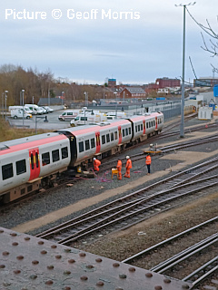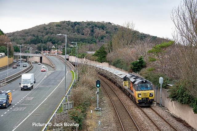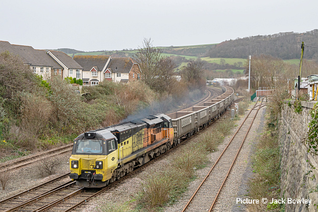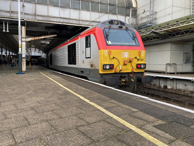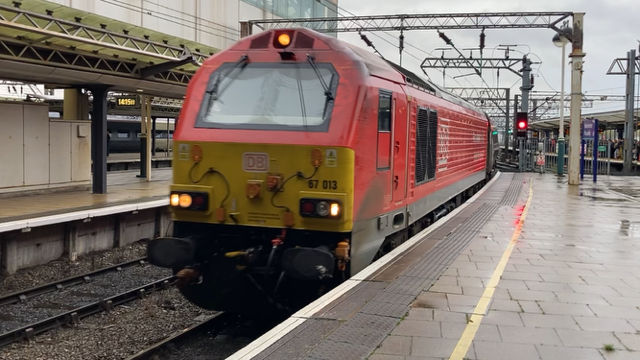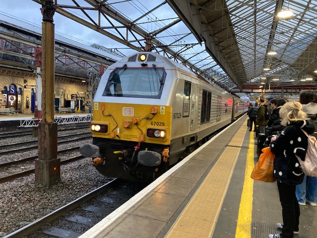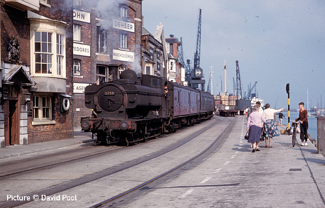 ![]() The guard of 197 125 1H91 15:43 Llandudno to Manchester Airport waits right time away from Flint oon 28 December 67s x 3 for Haulage - by Paul Hajdasz![]() On Friday 20 December I discovered that a few 67s were out on the Manchester Piccadilly to Cardiff diagrams, so I decided to do a few trips to see how many I could get for haulage. I started at Whitchurch, where the first 67 duly arrived on TfW 1W13 service but with DVT 82 230 leading (above). ![]() We arrived on platform 10 at Manchester Piccadilly, about 5 minutes late with 67 017 on the rear. ![]() Later in the day I caught TfW 1W46 14:30 service from Manchester Piccadilly back to Crewe, this time with 67 013. ![]() I only had to wait about half an hour until 67 029 arrived on platform 6 with 1W59 which I took to Stockport. A good loco-hauled day out ! News pictures![]() 4D61 Longport to Penmaenmawr at Llandudno Junction on 23 December... ![]() ... and 6K33 loaded return working at Colwyn Bay with 70 810. ![]() All Avanti trains on North Wales services are now formed of Class 805 bi-mode 'Evero' sets, in single or double formation. 805 001 passes Abergele on 1A50 12:48 Holyhead to London Euston on 28 December (Tim Rogers). ![]() 73 962 Dick Mabbutt and 73 963 Janice top & tail a Derby RTC train, it arrived at Chester on Saturday 28 December as 3Z40 12:25 Derby R.T.C.(Network Rail) to Chester Middle Yard, laying over until early Monday 30th December, departing as 3Q40 00:16 Chester Middle Yard to Derby RTC. ![]() The formation was 73 962 (west end) Staff coach 977969, support coach 5995, Brake open 9808, Ultrasonictest coach 62287, Driving trailer 9701, 73963. The blue one, 9808, is a former Caledonian Sleeper vehicle; it is on hire from Eastern Rail Services, who have been building a fleet of coaches for hire work. ![]() On 20 December unit 197 104 derailed on one of the hand-lever worked outside the CAF maintenance depot; a minor mishap, but an insight into how it is repaired using jacks and wood blocks. Picture by Geoff Morris. Yule logs in Shrewsbury - report by Graham BreakwellThe latest, and most probably last, Aberystwyth to Chirk Kronospan train of 2024 produced a couple of surprises. The down train ran in the early hours of 20 December and was scheduled to return at 15:48, however, it was rescheduled to leave at 09:50 on Saturday 21 promising the chance to catch it in daylight. ![]() 97 304 leads 37 405 off the Cambrian line onto the main line at Sutton Bridge Junction ![]() Passing beneath Sutton Bridge. ![]() After propelling the wagons into the shunt neck, detaching and proceeding in Coleham LMD 66 792 Collaboration came off the depot to take over. ![]() Then drew the train into the depot, seen here standing alongside 37 405, 97 304 and 97 302. Normally a Colas Rail 56 would take on the final leg to Chirk via a reversal at Chester but a shortage led to the hire of the GBRF Class 66, a rare sight in Coleham LMD. From Dave Sallery's Archive![]() 37 025 with a Colas test train near Prestatyn, 29 September 2016. ![]() 47206 enters Llandudno Junction yard with the petroleum coke empties from Holyhead to Immingham. The train was recessed here for C & W examination before onward movement. 14 July 1991. ![]() 56 111 and 56 112 near Mostyn on the charity 'Railfreight Coal day', 11 August 1991. ![]() Devastation at Wrexham General after the derailment of a down empty coal train, 29 April 1997. Looking back: South Coast 1960 - by David Pool![]() In 1960 there was a double track on Weymouth Quay near the terminal, so parked cars were not a problem on 8 September, when 57XX Pannier 3759 was leaving with the 3.45pm Boat Train for Waterloo. Note the bell in front of the cab, a requirement for locomotives on the quayside. Although a Southern Region locomotive would be taking the train forward, only the ex GWR locomotives were used on the quayside line at that time. ![]() A footbridge just outside Weymouth station was ideal for photographing trains arriving or departing. Although this was the destination of trains on the main line from Waterloo, the traffic on the Western Region line from Westbury was equally busy. The 4.15pm to Westbury on that day was headed by 7031 Cromwell’s Castle. This locomotive had been built ten years earlier, and was withdrawn in 1963. The coaches seem to be mostly Collett bow ended, dating from about 1930. ![]() The next arrival from the Westbury line was a 43XX Mogul 5385. which was withdrawn in 1962. An advantage of Western Region number plates was that they were easier to read, since the usual grime tended to obliterate painted numbers. ![]() The 3.28pm Westbury to Weymouth passenger service followed the freight, with Modified Hall 6994 Baggrave Hall drifting past the busy Weymouth shed. The first two coaches are Hawksworth designs, the third is a Collett Centenary and the end coach is another Collett type. ![]() My final shot at Weymouth on 8 September 1960 was one of the distinctive outside cylinder 1366 Class Pannier Tanks, three of which could be found at Weymouth for work on the quayside branch. 1369 was leaving the tramway section and picking up the fireman who had been stopping the traffic when required. The bell is clearly visible, but I am not clear how it was operated automatically. No doubt somebody can explain, as this locomotive has now been preserved and reunited with its bell, which had been missing for a number of years. ![]() The usual motive power for local trains on the Swanage branch in 1960 was an M7 tank locomotive. On 9 September the 9.47am Wareham to Swanage was being propelled by 30106. The push/pull set No.31 comprised a rebuilt ex SE&CR Birdcage Brake S3474S and an LSWR Composite, probably S4730S. ![]() Further along the coast, the Lyme Regis branch was still worked by the three Adams 0415 Class tanks 30582, 30583 and 30584. On 10 September 1960 30582 was photographed approaching the rather primitive platform at Combpyne with the 11.39am Axminster to Lyme Regis. Ten months