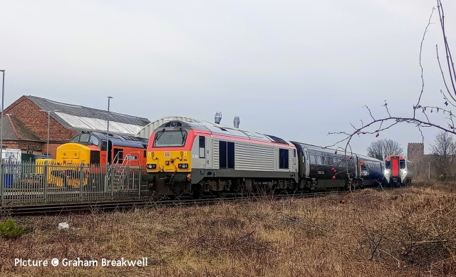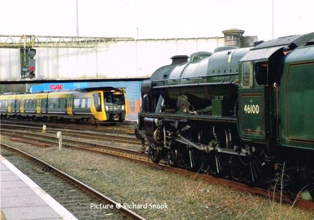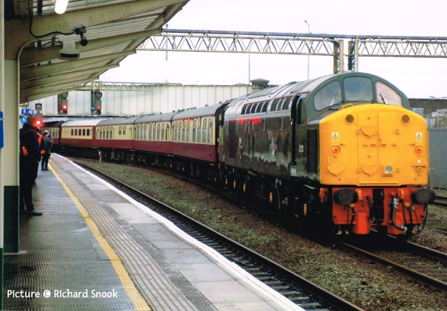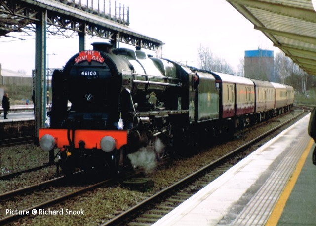 ![]() Another load of stone from Penmaenmawr crosses Conwy Cob, 13 January Picture by Logan Humphreys. News Pictures![]() Ivor Bufton writes: '197 036 is the latest 'Cambrian' 197 to be on test / mileage accumulation along the North Wales coast, here we see it making its booked stop at Prestatyn while working 5N71 11:09 Holyhead to Crewe on 20 January. This leaves (I believe) 197 022/23/25/26/32 and 197 037-197041 to put in an appearance along the coast'. ![]() HNRC loco 37 405 now has Swietelsky decals, following the European rail construction company’s acquisition all four orange HRNC locos, the others being 37 607, 20 302 and 20 311. 97 304 stands alongside. Swietelsky Construction Company Ltd has reached an agreement to work alongside Harry Needle Railroad Company Ltd (HNRC), who will provide mainline locomotives and access to heavy maintenance facilities at Worksop. To support the current business needs for Swietelsky and SB Rail in the UK, Swietelsky have identified a need to have access to a number of locomotives together with a heavy maintenance and overhaul facility for its current fleet of OTM and Kirow Cranes. ![]() From Geoff Morris: on 17 January I noticed there was an STP for a Basford Hall to Llandudno Junction working that was running at a reasonable time of day (Basford Hall dep 14:53) . I assumed that this would be slate empties and as I'd not photographed one of these trains before I made the short walk to Chester City Walls to remedy this. The train ran on time and comprised Freightliner's 66 510 hauling a rake of GBRf-branded box wagons. ![]() All in black: 82201 leads 1W57, the 10:54 Cardiff Central to Manchester Piccadilly... ![]() 67 014 providing the propusion. 197 121 is approaching on 1V40, the 11:30 from Manchester Piccadilly to Milford Haven. (Graham Breakwell) More on the Royal Scot![]() A few images that missed the deadline for last issue, and a quick history. (Incidentally seems that there two 'last runs' for 6100 - there was one on the south of England which also was a 'last run'. ) ![]() 6100 has had a quite remarkable history. In was built in 1930 as 6152 The Kings Dragoon Guardsman, and re-named as 6100 Royal Scot for a journey to America to tale part in the International Exposition in Chicago in 1933. On return, it retained the new identity and worked for the LMS and British Railways (including a complete rebuild with a different style of boiler) until 1962 when it was withdrawn in the general decline of steam. ![]() Pictures at Chester by Richard Snook. At the time, Butlins holiday camps had the idea to buy locos and station then one each at their various camps as a static attraction. 6100 was sent to Skegness, until 1971 it was moved to the Bressingham Steam Museum in Norfolk where it was steamed for a few years. Eventually it left Bressingham for Pete Waterman's LNWR Heritage workshops in Crewe for overhaul and return to the main line Under the auspices of Royal Scot Locomotive and General Trust (RSL>) in April 2009, chaired by enthusiast Jeremy Hosking. ![]() Llandudno Junction (Logan Humphreys). From Dave Sallery's Archive![]() 37 013, in Mainline livery, on an Up service near Mostyn, 15 May 1998. 37 013 was scrapped at EMR Kingsbury in February 2006. ![]() 37 058 near RAF Valley on an up train, 3 July 1999. This loco worked on North Wales duty on 29 May and from 3 - 5 July. Then after working a railtour, it was taken out of service and spent some time in France. It hung around until finally cut up in April 2009. ![]() 37 116 Sister Dora approaches Rhyl on a down train, 8 June 1996, substituting for a Class 37/4. (see Nic Joynson's Flickr). This loco is now working (nameless) for Colas. The name had been transferred in 1996 from 31 430 which was named during an open day at Bescot in October 1988. 31 430 is now in preservation, and has regained the name.
