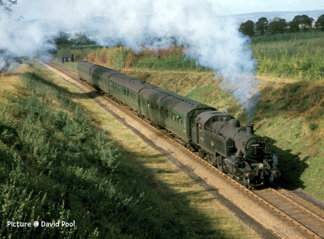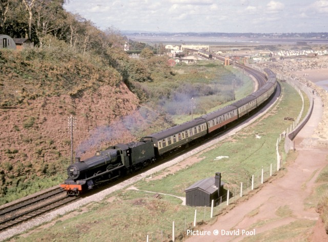 ![]() 37 131 is deputising for a Virgin 47 on a Euston - Holyhead train, 1D88 17L30 Euston - Holyhead as far as Crewe, seen near Prestatyn on 17 August 1998. 37 131 became well known to enthusiasts for its 'Welcome Aboard' sticker on one end, above the headlight. 37 131 met its end at CF Booth Rotherham in April 2007. Looking back: Devon and Somerset steam and diesel 1961 - by David Pool![]() On 11 September 1961 the Down Cornish Riviera Express was running in two portions beyond Exeter. The Penzance coaches were being hauled by 6919 Tylney Hall, one of the wartime built 4900 Class, and photographed from Langstone Rock, Dawlish Warren. Note the Camping Coaches in the siding near Dawlish Warren station. ![]() The Kingswear portion detached at Exeter then followed, also with a similar Hall Class locomotive, 6914 Langton Hall. In contrast to the lineside fencing and barriers seen on most railway lines today, the path on the Sea Wall at Dawlish gives photographers a superb view of and from the trains. ![]() The 09:10 Liverpool Lime Street to Plymouth on the same day featured a Castle Class, 5059 Earl St.Aldwyn. This was originally Powis Castle, but renamed in 1937. The curvature of the track at Dawlish station, together with the driver’s position on the right in GWR locomotive cabs, resulted in the starting signal being positioned on the “wrong” side of the tracks. ['Earl' Names were allocated to the 'Dukedog' (built with parts of a 'Duke' and a 'Bulldog' class loco) for use on the Cambrian lines. It's said that one of more Dukes objected to their names using for such old-looking locos, so the names were use to a batch of 'Castle' locos.] ![]() Cowley Bridge Junction in Exeter, where the line from Barnstaple joins the main line from Taunton, has always been a good location for photographs. On 13 September 1961 I was lucky to see 5700 Class Pannier 9670 with an Inspection Saloon. This appears to be a Collett Q13 Saloon, of the type preserved on the Severn Valley Railway. ![]() The County Class locomotives tended to be overlooked by Western Region enthusiasts, but did good work on lines North of Wolverhampton in particular. I was rather surprised to see a County on a Class 6 Express Freight at Cowley Bridge following the Inspection Saloon, but 1003 County of Wilts made an interesting shot. I had seen this locomotive in Chester in 1958, when it was based at Shrewsbury, but in 1961 it had moved to 83D (Plymouth Laira). There appears to be a cover over the coal in the Hawksworth tender – can anybody explain what this was? ![]() The Southern Region in Devon at that time made use of through coaches to and from various destinations which would be attached to main line trains serving London Waterloo. It might have been thought that through coaches from Exmouth might have taken the line to Exeter, but the branch line to Tipton St. Johns and Sidmouth Junction was preferred. On 14 September 1961 the 0952 Exmouth to Waterloo coaches were passing Littleham on the outskirts of Exmouth, headed by Class 2MT 41307. ![]() Returning home on 18 September 1961 I made a detour at Highbridge to photograph a train on the Somerset and Dorset line. By 1961 the 2251 Class 0-6-0 locomotives had taken over from the ex LMS Johnson Class 3F 0-6-0s, nine of which were originally owned by the S&DJR. 2277 was arriving at Bason Bridge with the 14:20 Highbridge to Evercreech Junction. ![]() Later at Weston-super-Mare, the 10:15 Bradford to Paignton (the Devonian) was diesel hauled from Bristol. The Laira Class 42 Warship D838 Rapid was then four months old, and the Western Region coaches were in Chocolate and Cream livery. Home page | Archive | Previous Notice Board |