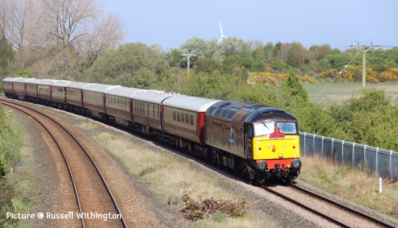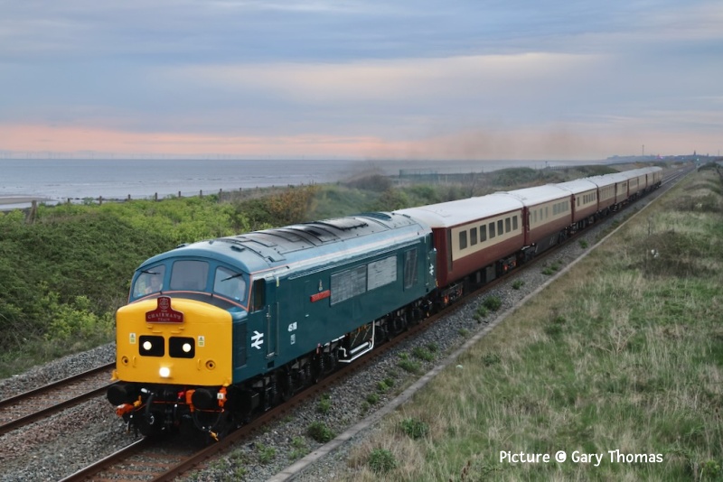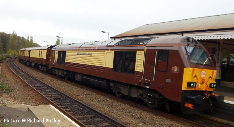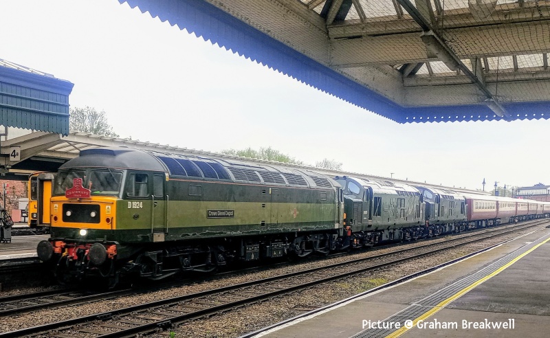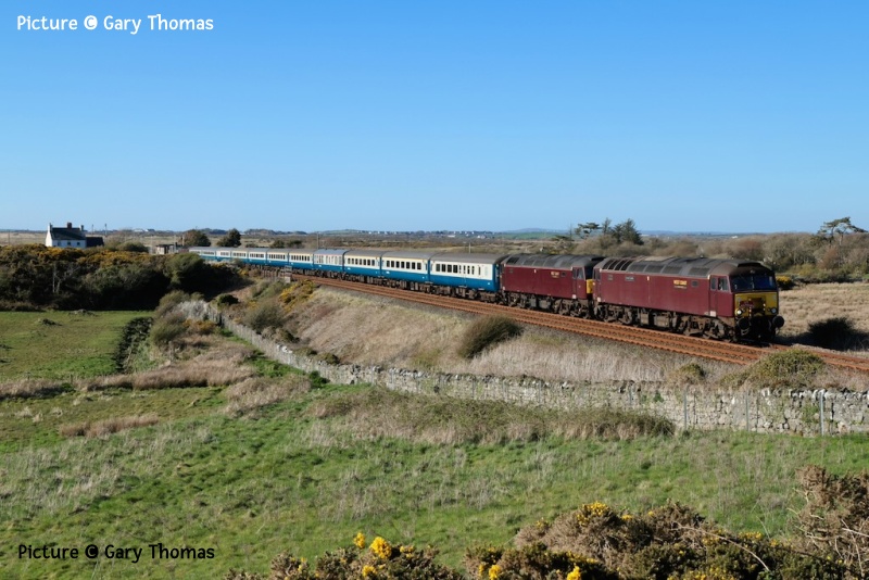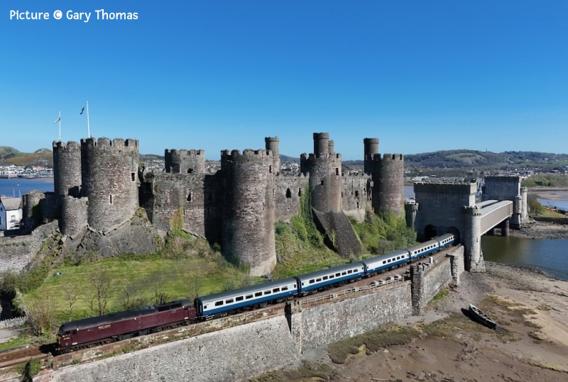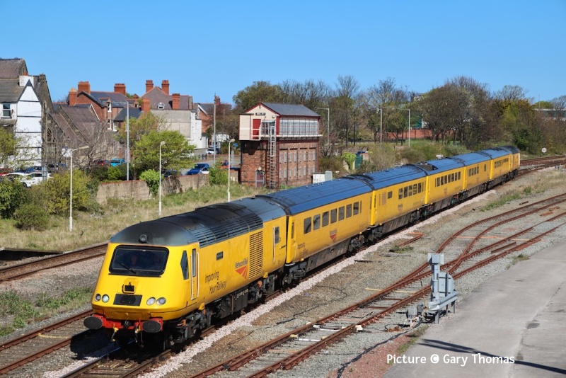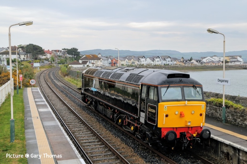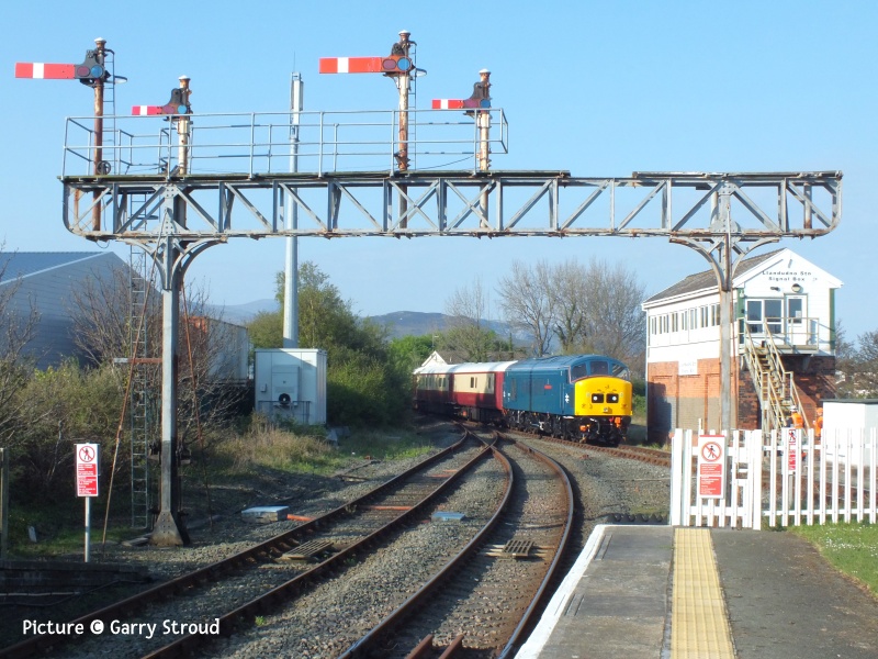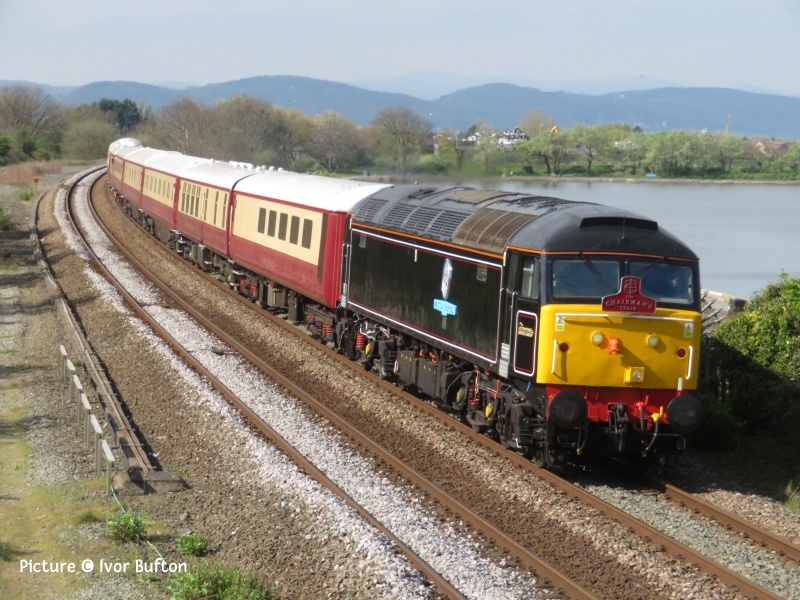 ![]() The NMT seen from Bangor Mountain, 17 April. Picture by Logan Humphreys. Note: To make room on this page I have inserted the Llangollen Branch Line gala pictures at the top of the 14 April issue. You can view it using this link. It's well worth a look.- Charlie Class 175 news![]() It's now confirmed that Great Western are taking on the Class 175 units (all except two fire-damaged vehicles) for service predominantly on the line between Exeter St Davids and Penzance, as well as to Barnstaple and Okehampton. Units have already been transferred, including 175 114 (above). GWR say 'In the run-up to service launch, GWR will undertake a comprehensive programme of training for staff, as well as preparing Laira depot, where the trains will be maintained. ' It's reported that another unit has been sent to Wolverton works for overhaul and repaint in GWR Green. News Pictures![]() Sunny Rhyl on 17 April, with the New Measurement Train with 43 013 Mark Carne CBE and 43 062 John Armitt passing. A 'traditional' consist using Network Rail's own traction (Gary Thomas) ![]() Bagillt on the return (Russell Withington). Russell writes: 'now that the ETCS-fitted power cars are back at RTC what turned up was exactly the same consist as in March: 43013; 977994; 975984; 977993; 975814; 977984; & 43062. Looks like the days of ex-CrossCountry and East Coast power cars are behind us.' ![]() Two more sunny scenes by Gary Thomas - subject: the Snowdonian railtour on 5 April. Seen passing Conwy Castle on the outbound wth 47 848 ... ![]() ... and passing Rhosneigr on the return, after 57 314, sent from at West Coast's depot at Carnforth took over take over. What was wrong with the first two locos? ![]() TfW trains were diverted through Styal over Easter due to the lines through Stockport being closed as part if the project to replace the bridge near the station, which doubles as a Roundabout. Greg Mape photographed passing at 18:56 on 19 April the 13:00 Fishguard Harbour - Manchester Piccadilly (arrival 19:10), a distance of 234 miles, four miles longer than Holyhead - Cardiff. The train started out as just 197 001, 197 118 was added at Swansea to make up a 5-car trains. 197 101 is named Robin after a Wrexham footballer - you can just make out a small rectangle above the first pair of windows. The Chairman's Train![]() Pensarn (Gary Thomas). LSL's 'Chairman's Train' made a trip to Llandudno on Saturday 19 April, hauled by 45 118 from Crewe. It was late, having left Cornwall earlier in the day some three hours late (see next item), but that had been reduced to 74 minutes on arrival at Llandudno. ![]() 57 002 went light engine to Llandudno earlier in the afternoon and it hauled the train the following morning on the next leg to Oxenholme. The picture by Gary Thomas is at Deganwy. 57 002 had been named Winston Churchill at London Paddington on Thursday 17 April. ![]() Backing in to the sidings at Llandudno, framed by the signal gantry which is possibly the last of its type on Network Rail metals. ![]() 45 118 returned light engine to Crewe shortly afterwards, seen at Llandudno Junction (Logan Humphreys). ![]() Talacre (Gary Thomas). ![]() 57 002 in charge of 1Z37 10:00 Llandudno to Oxenholme Lake District on 20 April passing Marine Lake on the approach to Rhyl station (Ivor Bufton). The train, turned out in Carmine and Cream comprised 6707 (Zanzibar); 35467 (Generator Car); 10520; 10519 (both Sleeping Cars); 6708 (Mount Helicon); Pegasus (which is Pullman Car 310, and also carries ’The Trianon Bar’); 99993 (Dining Car); 6706 (Mount Mgahinga); 46014 (Moidart); & 6705 (Ardnamurchan). ![]() Bagillt (Russell Withington). It's good to see that the vegetation is being kept in track. What happened before - report by Graham BreakwellAs mentioned above, the Chairman's train had problems on its trip from Cornwall. The charter passed through Shrewsbury on 19 April with “The Chairman’s Train” headboard but with no passengers on board except for two men seen looking back from the veranda of an observation coach on the rear! Jeremy Hosking perhaps? ![]() The train in question was 1Z33, the 06:00 from St Ives to Shrewsbury, due to arrive at 15:02 and depart at 16:02 as 1Z34 to Llandudno. However, both locos, D6817 (37 521) and D6851 Flopsie (37 677) failed on arrival in Penzance where a run round was scheduled. Eventually Flopsie was revived sufficiently to depart 188 minutes late, hauling the 9-coach train and a dead D6817 as far as Bristol Temple Meads where D1924 Crewe Diesel Depot (47810) took over having been sent to the rescue from Crewe. ![]() Arrival in Shrewsbury was 155 minutes late and two minutes later D1924 powered away to Crewe with both 37’s shut down. Unfortunately, the 4 car 17:30 service to Aberystwyth and Pwllheli was standing in platform 3 obscuring the view of the charter passing through on platform 4 but here are two images. The three locos were replaced at Crewe by Peak 45 118 for the final leg to Llandudno. Green SignalsReaders may have heard of the 'Green Signals' website (and podcast) run by Nigel Harris , formwe editor of Rail magazine, Richard Bowker, former chairman and chief executive of the Strategic Rail Authority, a former chief executive of National Express, and more, and Stef Foster a former Acting Editor of RAIL magazine. Some of their content is the endless discussion about how the railways should be organised, etc., but recently there have been two features which are topical interest to our readership. A piece about the ECTS test with Tornado, testss which are carried out in the night time between Shrewsbury and Newtown. It seems that they think they have managed to squeeze into the cab the necessary screen, which directs the train driver, and the hot and rattling steam loco cab. The other: On track for £15M of track renewals on the Cambrian Line & The future of ‘Local Railways’ is worth look. You might remember mention here of the 'Local Railway' on the Cambrian, and how it c