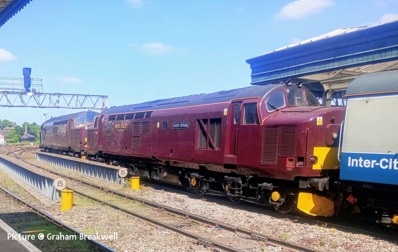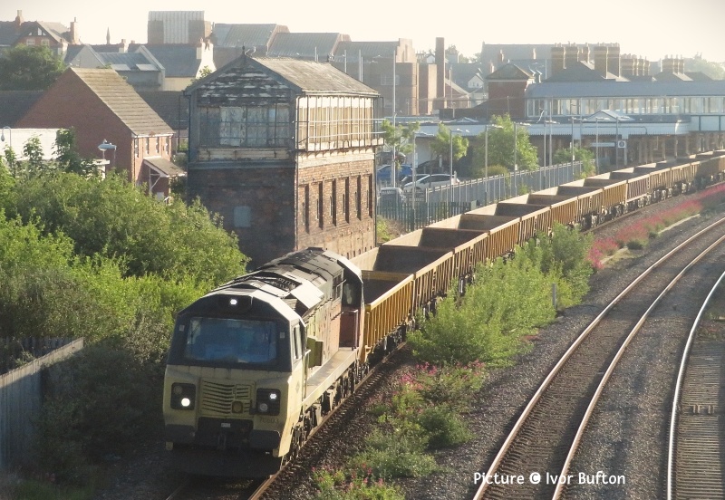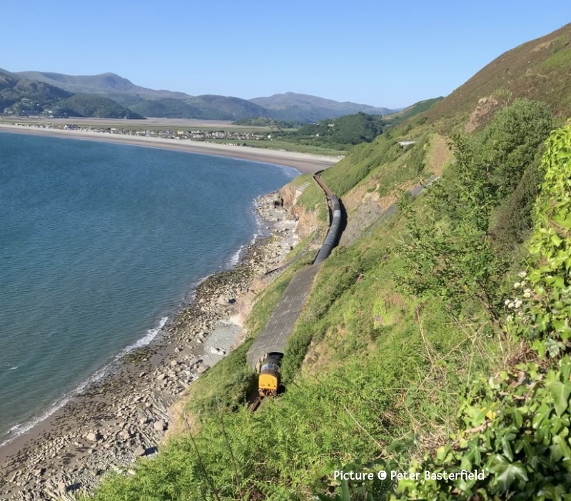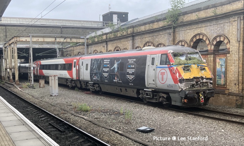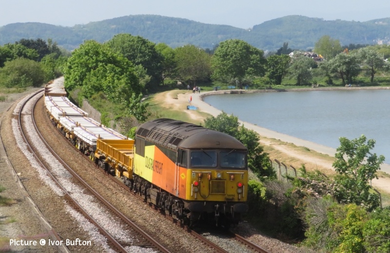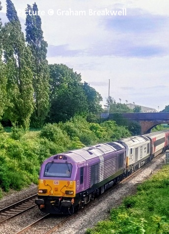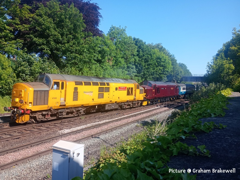 ![]() 22 May saw a load of stone dispatched from Penmaenmawr by DC Rail, not as we expected, to London, but north to Leyland on the West Coast line, with 60 055 Thomas Barnardo. Photograph by Logan Humphreys. News Pictures![]() 66 414 enters Llandudno Junction, with the 4D14 from Crewe Basford Hall yard with slate waste empties on 16 May (Garry Stroud). ![]() In the sidings (Logan Humphreys). ![]() 57 313 and 57 601 pass Conwy on a Northern Belle 'Spirit of Travel Lunch', 16 May (Logan Humphreys) ![]() 68 008 Avenger and 88 003 Genesis pass Cadnant cutting, Conwy on 19 May as the outward run 6D43 Crewe to Valley flasks ... ![]() ... The return run was not top-and-tailed as expected as was the outward run but double-headed with 88 003 pass through Conwy station with the 6K41 return Valley to Crewe flasks. These runs are made every few months to secure DRS's paths in case of any further work on the Coast line. (Garry Stroud) ![]() Entering Llandudno Junction on 21 May, DCRail 60 055 heads for Penmaenmawr, with the 6D90 13:13 Chaddesden sidings, Derby to Penmaenmawr quarry, empty for stone (Garry Stroud). ![]() UK Railtours ran an excursion on 24 May called 'The Soul Arranger' departing from London Euston at 07:26 to Aberystwyth as 1Z47. Above, 97 303 which had attached at Shrewsbury station with 37 685 inside, passing Meole Village with both locos on full power. The explanation for the excursion name is relevant to the optional trip on the Vale of Rheidol Railway to Devil’s Bridge where legend has it that the Devil constructed the bridge for a lady and her cow in exchange for her soul! ![]() On 25 May the New Measurement Train visited the Coast, seen here at Gypsy Corner near Bangor with 43 062 leading, with the driver apparently trying to clear the windscreen of dust and insects ... ![]() ... 43277 on the rear (Peter Basterfield). Little effort seems to made at present to clear trees from the lineside. Accident near LeominsterAround 10:40 on 22 May at a User Controlled Crossing near Nordan Farm, just north of Leominster train 1V37, the 08:30 from Manchester Piccadilly to Cardiff Central struck a loaded trailer being towed by a tractor. The driving trailer took the brunt of the collision, and the train came to rest with the rear coach straddling the crossing, suggesting that the train driver had seen the obstruction from a distance, on what was a straight section of track. Also, the train would have been slowing for the stop at Leominster. There was no derailment, and only a small number of serious injuries. The tractor was detached from the tractor and appears undamaged. Fortunately it was possible to stop a northbound train at Leominster. There were two people in the cab, a Trainee Driver and a Trainer, we understand that neither was seriously injured. The tractor driver has been arrested and released on bail, and the Rail Accident Investigation Branch will have been notified. Trains were terminated at Shrewsbury and Hereford with bus replacements in between with train services gradually restored late the following afternoon. The train was towed back to Crewe depot as 5Z02, the 16:15 from Woofferton, where there was once a station, closed in 1961, but the signalbox remains, controlling a loop and crossovers. Below are some images as it passed Shrewsbury Golf Course, taken by Graham Breakwell. ![]() 67 007 towing 67 029 Royal Diamond and its five coaches with DVT 82229 on the rear. 67 007 was recently purchased to act as a 'Thunderbird' to rescue stranded trains. It is not fitted for the equipment needed to work 'push-pull a normal passenger train. ![]() Damaged 82229. ![]() Coach roofs covered in grass from the trailer. Fortunately it was carrying grass for silage and not a more unpleasant material. The procedure with such crossings is that the gates on both sides must be kept closed when not in use, and if a person wishes to cross the with a vehicle, they must contact the signaller on the telephone provided for permission. When the signaller estimates that there is time between train movement this is granted, and the person in charge of the vehicle should promptly open both gates, then take the vehicle across, then close both gates. This procedure with the gates also applies to walkers, with no requirement to contact the signaller. A weak link in this procedure is that if for some reason a vehicle comes to a stand on the crossing, or moves too slowly, a collision or near-collision can occur. Another is that the signaller might wrongly estimate the time available. In the six miles between Leominster and Woofferton, there are nine user-worked crossings. An ORR document from 2019 is worth a look. ![]() At Crewe en route to the Electric depot (Lee Stanford). Miscellany![]() The view from Colwyn Bay's truncated pier, with 197 109 passing with the 12:52 Llandudno - Manchester Airport. Dominating the view up towards the well-known photo spot is the block of 29 apartments which replaced the Hotel Seven Degrees, so named because of the angles used in its construction. It made for an unusual concept, but from the builder's point of view, proved 'a terrible waste of material'. (Greg Mape). ![]() Bob Greenhalgh writes: 'On Saturday 24 May I had the honour of being Llanuwchllyn signalman at the Bala Lake railway. Here is a photo of Hunslet 779 Holy War, passing diesel Meirionnydd, as she steams into Llanuwchllyn station.' Weekend work - seen by Ivor BuftonWeekend engineering work often gives the opportunity for something different photographic wise, and the weekend of 17th / 18th May offered just that. Engineering work was taking place in the Llandulas - Colwyn Bay area which necessitated a line possession from Rhyl to Llandudno Junction, The works trains crossed from the Down to the Up at Rhyl and entered the possession working wrong line toward Colwyn Bay, Below I have tried to capture the scene at Rhyl on 17th May. ![]() 70 803 hauling 6C21 05:50 Basford Hall Yard to Rhyl slows on the approach 