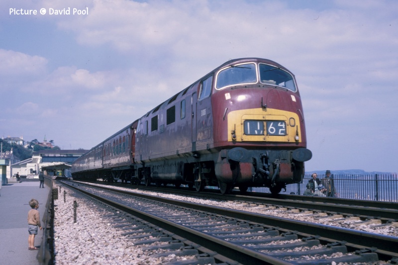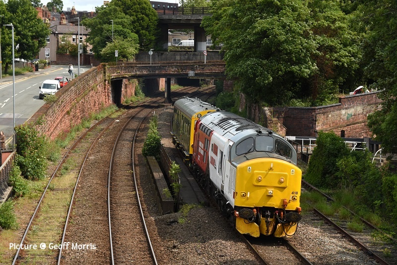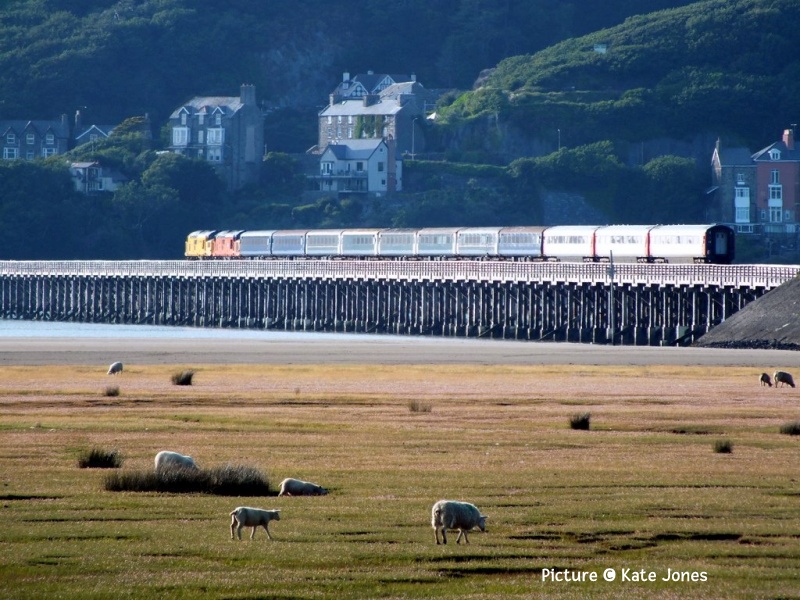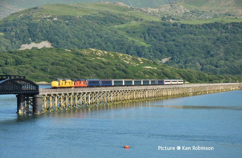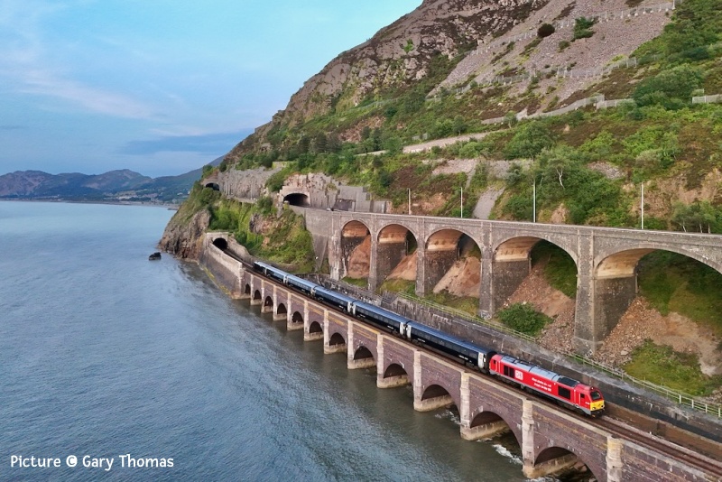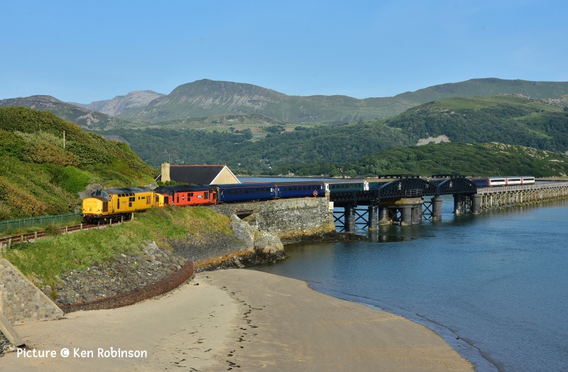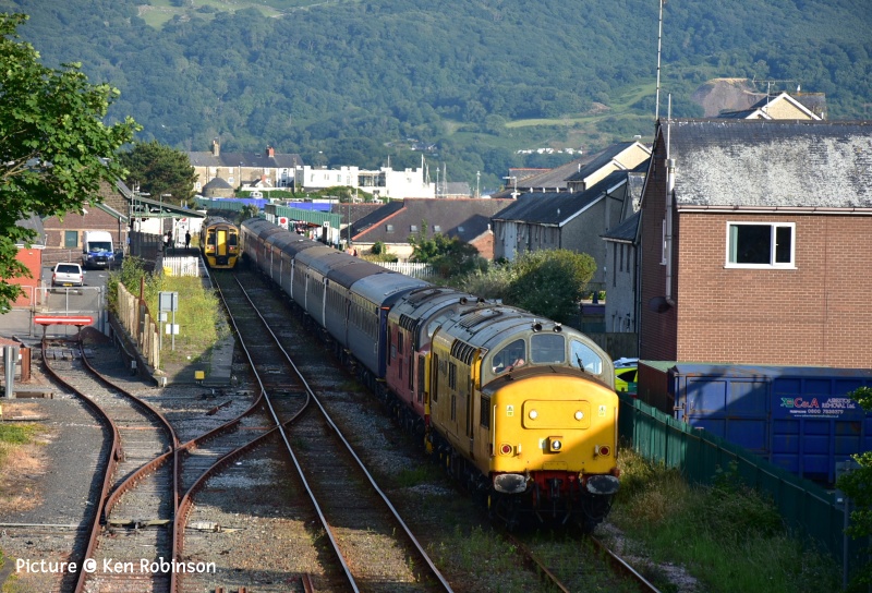 ![]() Seen on 10 June 67 013 on the 'Wag' from Cardiff on Pen-Y-Clip Viaduct, Llanfairfechan. Picture by Gary Thomas, who notes 'Everything, with the exception of the dark coloured carriages came together for this shot!' News pictures ![]() 66 791 heads 6J37 Carlisle - Chirk near Kirkby Stephen on 11 June 2025. The locomotive is on loan from GBRf to Colas (Ian Pilkington) ![]() Hereford on Tuesday 10 June: 66 656 was on 6V75 0931 Dee Marsh to Margam, though on this occasion only going as far as Llanwern, and unusually put into the platform road for its crew change, rather than the Down Through (John Oates). ![]() The Bayer Weedspray train resting in the Rhyl Engineers siding on 10 June just before the rain, 66 749 in the sunlight (Gary Thomas) ![]() Out on the line at Llandudno Junction (Logan Humphreys) There is an interesting PDF document on-line about this and the other Network Rail weedkiller trains. ![]() On 3 June Geoff Morris captured Loram-liveried 37 418 An Comunn Gaidhealach passing Chester Locks hauling track inspection saloon 975025 (Caroline) on a circuitous route as 2Z25 Derby to Newport. (See also Dave Sallery's archive below for a view of the same loco in the 1990s). ![]() Greg Mape went for a ride on the Coventry Very Light Rail Demonstration Line on 4 June. A prototype Very Light Rail vehicle and a novel design of track is being demonstrated under real-world conditions in Coventry, the latest step in a research project which aims to reduce infrastructure and operating costs to a level which would make trams an affordable option for medium-sized cities. First Class Upgrades going cheapTfW say: 'Make it First Class with First Class upgrades starting from just £10 between 14 June - 31 August. Want a weekend treat? Every weekend until 31st August all First Class upgrades will be £10, no matter the journey length. You can upgrade on-board or before your journey with Seatfrog on applicable services. Tickets are subject to availability. Selected routes only. National Rail Terms of Conditions apply.' What's Seatfrog, you might ask. It's an phone app which let's you to bid in an auction for seats. TfW have joined in the fun with First Class seats. Of course TfW don't do seat reservations, so you there appears to be no certainty that you will get a seat - and what if your train turns out to be a 197? There's also another app being tried, called JurneyOn [sic] which is a complicated Loyalty scheme in which you collect 'points' for every mile travelled. Useful for some, perhaps, although it's not available for Android at present. Barmouth in pictures 10 June![]() 10 June seen at Barmouth 08:26 Haverfordwest - Pwllheli empty stock working, as a test run for 'Britannic Explorer' excursions later on in the year... ![]() ... The sheep weren't excited. (Kate Jones) ![]() Ken Robinson writes: .'I went to Barmouth on the evening of 10 June as the weather was clear and sunny... ![]() ... Approaching Barmouth with 97 302 leading and 37 685 on the rear.... ![]() ... and 158 836 in the platform at Barmouth, just about to depart south as the 17:42 Pwllheli - Birmingham International. Two Days at Rhyl and around - report by Paul Hajdasz![]() On Wednesday 11 June I travelled by train to Rhyl for a short break. I took 1J11 TfW 10:58 service from Birmingham International to Aberystwyth, boarding at Telford Central with 4 car 158 840 & 158 820. Going in the other direction was The Holyhead- Birmingham International service with 158 834, but this terminated at Wolverhampton due to a problem with the traction equipment ![]() I alighted on platform 5 at Shrewsbury, where I transferred to the TfW Cardiff - Holyhead service to Rhyl with a five-car 197 unit. Reaching Chester I saw Mersey-rail EMU 777 002 about to leave for the regular circular journey to Liverpool and back . ![]() On arrival at Rhyl, stabled in the engineering sidings was the Bayer Weedspray on 3Q98 with top & tail 66 766 & 66 749. ![]() I also took a photo of disused, but listed, Rhyl No.2 signalbox at the southern end of platform 2. ![]() On Friday morning of 13th June, before heading home I decided to have a ride on the Rhyl Miniature Railway around the mile-long circuit of Marine lake, which first opened in 1911. The engine in use on that day was diesel Clara built in 1961 originally for service at Dudley Zoo. ![]() There was also a static display in their museum with ‘Billy’, one of six similar engines built in the 1920’s by Albert Barnes & Co. of Rhyl. From Dave Sallery's archive![]() 37 408 Loch Rannoch passes 31 439 and 31 455 on ballast empties to Penmaenmawr, 27 June 1995. ![]() 47 841 The Institute of Mechanical Engineers leaves Holyhead with the Afternoon boat train to Euston, 3 March 1991. The loco shed had just been demolished. ![]() 37 417 Highland Region passes Prestatyn with ballast empties, 17 May 1994. ![]() 37 418 Pectinidae leaves Prestatyn on an up service, 31 July 1993, verysoon after the introduction of regular class 37 haulage on the Coast The well painted hut was a victim of the footbridge's reconstruction. The coach is one of a number transferred from London and South East sector, with the red stripe of the LSE livery painted out. Later, loco and coaches were reprinted in full Regional Railways colours. Looking Back: West Country Diesels part 2 - by David Pool![]() In 1967 many of the mainline trains in the West Country were being worked by the “Western” Diesel Hydraulic locomotives. Although the first 30 locomotives (D1000 to D1029) were built at Swindon, the remaining D1030 to D1073 were built at Crewe. At Dawlish on 10 June 1967 the Crewe built D1040 Western Queen, still in maroon livery, was on the 08:25 Kingswear to Paddington. The coaches on this train were all in the corporate BR blue/grey. ![]() Later that morning the 11:50 Plymouth to Manchester had the locomotive D1069 Western Vanguard in BR blue with the coaches still in maroon. ![]() I walked along the sea wall towards Dawlish Warren, an