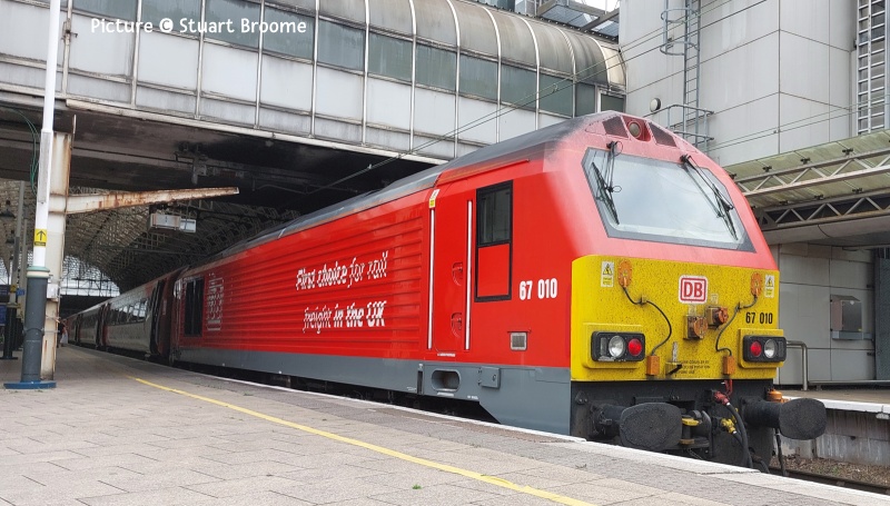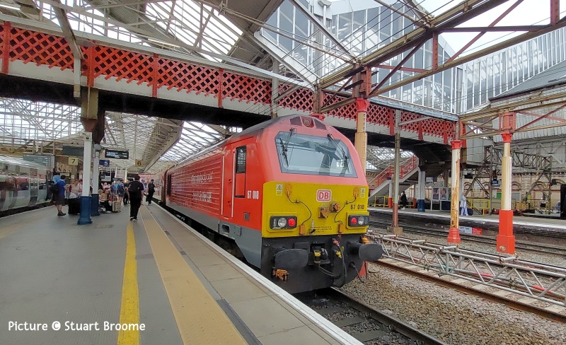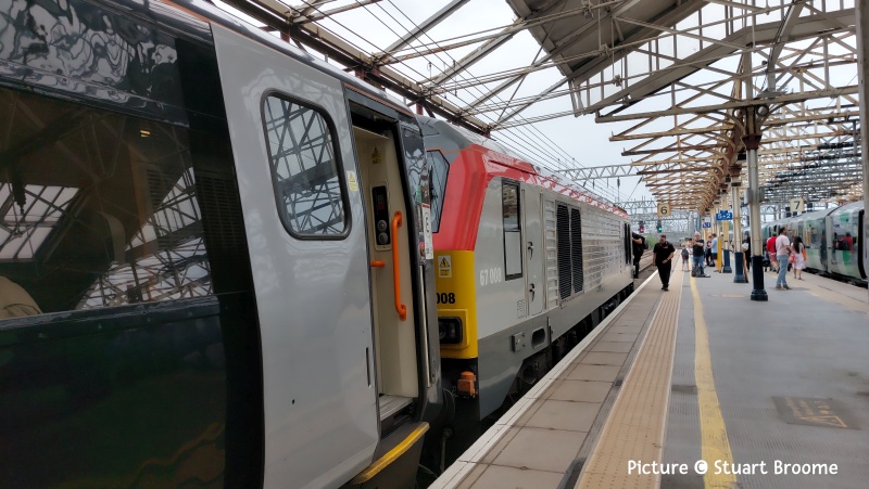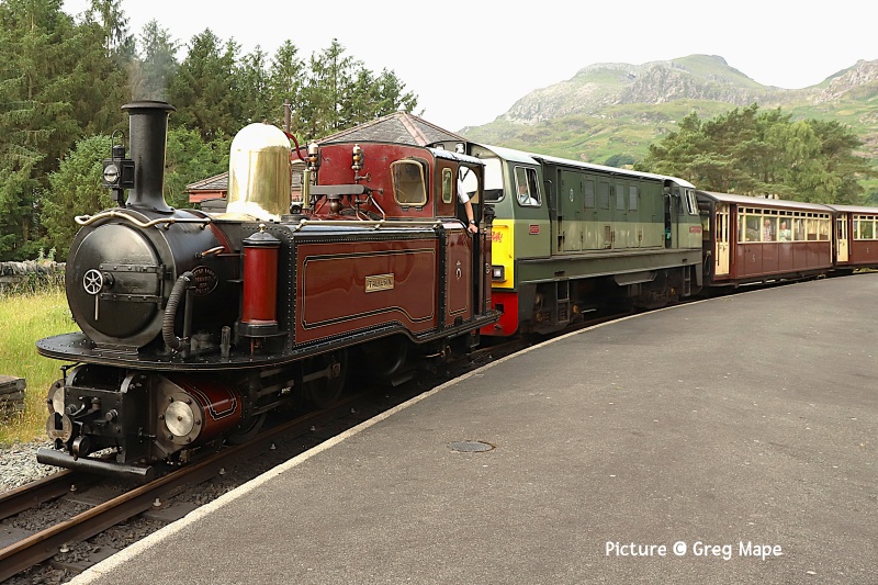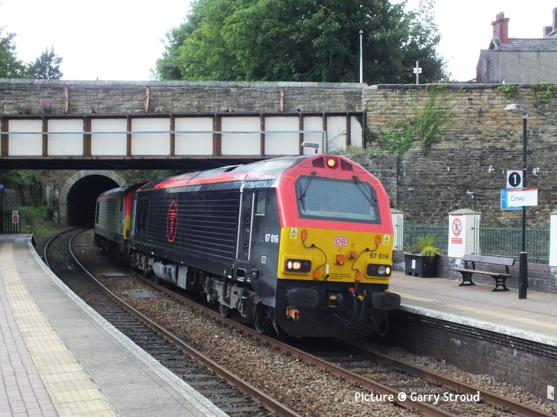 ![]() The Ffestiniog Railway's observation coach on a the rear train passing Tanygrisiau on rainy 21 June. Picture by Greg Mape. Note: The next issue will be on the evening of Tuesday 8 July due to holiday. - Charlie 67s in Action![]() Following a trip from Cardiff Canton depot on 16 June, on 17 June 67 016 was sent by light engine to Holyhead to collect 67 025 and take it back to Crewe carriage sidings. Seen here 67 016 with 67 025 in tow, forming the OZ25 15:00 Holyhead to Crewe carriage sidings as it passes Conwy station (Garry Stroud). ![]() Stockport on 18 June, watched by the mysterious device at the end of platforms 1/2, 67 012 heads north with 1W57 10:52 Cardiff Central - Manchester Piccadilly. Sadly, this loco has lost its elegant grey-and-silver livery created for the much-missed Wrexham and Shropshire company. Now we have awful black. Why does the loco have to be the same colour as the coaches? (incidentally something like the W&S service, but running to Euston not Marylebone and with different stops, is currently proposed. It won't be loco-worked. though.) ![]() Gary Thomas writes: with the longer days I've been able to get a couple of different shots of the "WAG" just before the sun set. Above, on 18 June passes Dywgyfylchi with the 1W96 17:14 Cardiff Central - Holyhead, 67 010 in charge ... ![]() ... The same service on 19 June, with 67 029 on Pen-y-Clip (Gary Thomas). ![]() On Crewe 21 June 67 010 on the rear on 1W57 10:53 Cardiff to Manchester (Stuart Broome) ![]() At Crewe on 21 July 67 008 waits with 1V42 12:30 Manchester Piccadilly to Cardiff (Stuart Broome) ![]() At Manchester Piccadilly on 21 June 67 010 waits with the 14:30 departure to Cardiff (Stuart Broome). Miscellany![]() On 21 June 197 012 calls at North Llanrwst working the 06:18 from Blaenau Ffestiniog to Llandudno ... ![]() ... and passing the signalbox. Later in the day there was a problem leading to the cancellation the 10:46 from Llandudno and 12:13 return service, attributed to 'a problem with the on-board safety systems'. Bad news for anyone travelling to the 'Platinum Jubilee Gala' on the Ffestiniog Railway. The rest of the day's trains were worked by 197 047. ![]() Twenty Years Ago: a photo by Ivor Bufton of 90 039 that made it as far as Llandudno Junction on 25 June 2005 - doesn't time fly! For some reason it was left on the train train from London at Crewe when the diesel was attached, but taken off at Llandudno Junction because of the Conwy tubular bridge. The loco is standing on what is now used - in a different layout - by slate waste trains. These are rare at present; The flow to the cement works at Hope in Derbyshire still has not managed to start. ![]() On 22 June, A visit to the preserved ship Daniel Adamson, 197 109 passing Frodsham Junction with the 14:41 Manchester Airport - Chester (Greg Mape). Ffestiniog Gala: impressions by Greg Mape![]() Lyd at Minffordd. ![]() Taliesin and Vale of Clwyd at Tanygrisiau. ![]() Demonstration freight at Tanygrisiau. ![]() The famous 'gravity train' at Minffordd - not too many passengers due to the weather. ![]() Greg writes: A recreation of the trains that brought slate from the quarries/mines around Blaenau Ffestiniog down to Porthmadog. All done by gravity! Pictures taken at Minffordd. The gravity train stopped in the station, and with the staff on the wagons using their legs to push and shove between the wagons the train started to roll again, it looked like a slurry was being poured on the track to reduce friction. Also the train was hauled by a steam loco first before the wagons started their trip by gravity. ![]() From Dave Sallery's Archive![]() 37 098 and 37377 near Tal-y-Cafn on 18 April 1998. They were on the rear of the "Roman Nose" railtour to Trawsfynydd. 59 205 was on the front. ![]() 37 403 Ben Cruachan makes a rare appearance on the coast. Seen on a Down train near Prestatyn, 22 July 1999. Note the extra coach hired for the summer. ![]() 47 476 and 47 736 return to Crewe near Mostyn, 23 June 1994. 47736 was on test. In the background, Duke of Lancaster, a former British Railways ferry that has been grounded on the shore since 1979. ![]() 70 002 is in Latchford sidings after running around an empty coal train from Fiddlers Ferry, 17 February 2012. The line here, past the closed power station at Fidler's Ferry is suggested as part of the proposed new line between Liverpool and Manchester. Feedback: Torquay loco![]() Mark Hambly writes: Torquay gas works loco referred to in the last issue (and reprised here)is a Ruston & Hornsby 88DS, works number 402809 of 1956. It was new to Torquay and then, when the works closed, it was transferred to Exeter gas works in August 1968. It was subsequently sold to Small & Lewis, scrap merchants, of Gloucester in June 1971.(From the Industrial Railway Society's South Western England Handbook compiled by Roger Hateley). Looking Back: West Country Steam and Diesels 1967 part 3 - David Pool![]() The Great Western Railway Society had been acquiring locomotives withdrawn from BR, and had been storing them at Totnes while negotiations were in progress for a move to Didcot. I was fortunate to see them on 13 June 1967, shortly before they were moved. 1363 was a 1361 Class docks shunter from Plymouth, and 6998 Burton Agnes Hall last worked from Oxford shed, being withdrawn in 1962. ![]() Further up the Ashburton branch at Buckfastleigh the newly formed Dart Valley Railway had obtained some locomotives when they had been withdrawn a few years earlier. 14XX Class 1420 had been repainted and would be in use when the DVR was able to operate passenger services. These commenced in 1969, after the line between Buckfastleigh and Ashburton had been severed by reconstruction of the A38. ![]() Another 14xx Class at Buckfastleigh on 13 June 1967 was 1450, which had been an Exeter locomotive used on the Dulverton and Tiverton branches until withdrawal in 1965. I was very happy to see 1450 again, which since 1967 has had a remarka