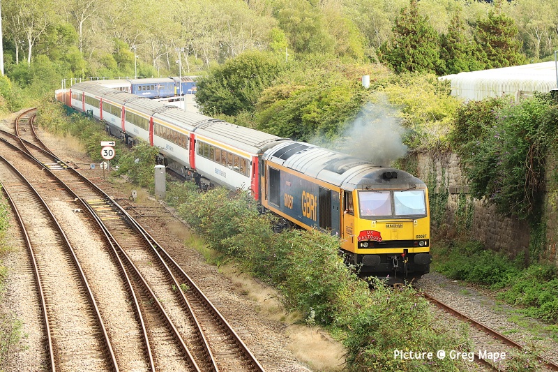 ![]() 97 302 and 37 668 pass Llanbedr on the return 'Cambrian Coast Express' on 5 September Picture by Gary Thomas. Some items have been held over to the next issue. The Industria DitatOn 6 September UK Railtours ran a train with the name shown above, which is the motto of the town of Widnes; translated from the Latin means 'Indistry Enriches'. The aim of the day was to travel on as many section of line which normally does not see passengers. Extracting from the organiser's text: The month of September marks the 200th anniversary of the modern railway age, a time when the Industrial Revolution was firmly underway, creating a period of great change in Britain. To celebrate these events which had an impact on every aspect of life, we were inspired to arrange a September freight line tour.The Railtour visited several sections of non passenger track in the North West and North Wales, departing from Watford Junction behind 57 303, the tour was routed via the Crewe Independents before reaching Ditton Reception Sidings where 60 087 Ingleborough was attached and the tour then visited Alstom Widnes Train Care Centre. From here the tour headed to Warrington via the Ditton to Latchford freight only line, then heading for North Wales via the Hartford Chord and a reversal at Northwich, in North Wales the tour traversed the Mostyn Up Goods Loop (from the down main - this allowed both crossovers to be traversed) and the slate loading sidings at Llandudno Junction. A selection of the many pictures received follows. Hopefully everyone is represented! ![]() Greg Mape writes: Parked in Runcorn I saw 57 303 pulling out of the station ... ![]() ...and rode my bike via the Runcorn-Widnes old bridge & then along the side of the Sankey Canal to get pictures of the Watford Junction to Llandudno Junction railtour. passing the remaining part of the former Power Station at Fiddlers Ferry (Greg Mape). ![]() A sooty approach to Chester... ![]() ... and the two locos together (Logan Humphreys) ![]() 57 303 at Chester (Geraint Williams) ![]() The Indistria Ditat Railtour heads for Llandudno, 6 September. Picture by Bob Greenhalgh. ![]() 60 087 Ingleborough is seen approaching Rhyl with 1Z16 11:45 Widnes to Llandudno Junction ... ![]() ... with 57 303 on the tail. ![]() The train has crossed to the to the Up line to enter the Goods Loop the Mostyn Goods Loop, 57 303 on the rear (Roland High). ![]() Arriving at Llandudno Junction (Garry Stroud). ![]() (14:29) 60 087 taking the train out of the station so that it could access the yard and the slate waste loading facility. This was an unusual move, thanks to co-operation from Breedon, the company who own the quarry at Bethesda (Ken Robinson). ![]() (14:34) Reversing towards the siding, with 57 303 now leading. 197 124 is seen on the right coming off the Llandudno branch with the 15:04 from Llandudno to Llandudno Junction (Ken Robinson). ![]() 197 043 coming off the Conwy Valley line, passing 60 087 in the siding (Gary Thomas) ![]() More 'clag' from 60 087 (Greg Mape) ![]() 57 303 starts the return train to Watford Junction (Gary Thomas). Cambrian Coast Express![]() Pathfinder's 'Cambrian Coast Express' from Cardiff to Pwllheli on 5 September at Barmouth (Kate Jones) ![]() 97 302 and 37 668 taken near Black Rock at Criccieth on 5 September ![]() Penchain (Gary Thomas) From Dave Sallery's archive![]() Class 25 No. 25 191 in Rhyl yard after permanent way duties, 12 October 1986. Where the loco is standing is now part of the Home Bargains car park. The rest of the once extensive goods and carriage sidings area is a Morrisons supermarket. ![]() 31 201 + 31 163, Tal y Cafn, 1 July 1994. On the Conwy Valley line with nuclear flasks from Trawsfynydd. ![]() 33 039, Llandulas, 17 August 1985. Working a Crewe to Bangor train during that tragically short period when 33s were daily visitors to the coast. ![]() Knottingley depot, 5 September 1993. Classes 08, 09, 56, 58 and 60 are in view. Railfreight Coal at its finest. Looking Back: Steam, Diesel and Electric 1969 part 3 - by David Pool![]() In 1969 the Kent and East Sussex Railway preservation activities were mostly concerned with the acquisition of rolling stock, since there were difficulties in getting permission to operate a passenger service, initially between Tenterden and Rolvenden. Passenger services on the whole line between Headcorn and Robertsbridge had ended in 1954, but some freight workings continued. The final train was a railtour in 1961. At the time of my visit to Rolvenden on 25 June 1969 there was an interesting collection of locomotives, some recently painted, but few signs of any movements. The ex GWR Railcar W20W was a surprise, and has been on the line ever since. ![]() Several steam locomotives had come from the Sproxton Ironstone Quarry in Leicestershire, such as Hastings, Hunslet No.469 (1938). ![]() A rather small (10 ton) Peckett No.1631 (1233) was now K&ESR No.12. This locomotive originally worked in Scotland. but ended its working life at Pendleton, near Manchester. in the works of the chemical manufacturers Hardman & Holden. It had been named Marcia after the wife of the Managing Director. In 2024 it was purchased by a driver from the K&ESR and the model manufacturer Rapido. and its future on the K&ESR now looks to be secure. ![]() Another locomotive from Sproxton was Charwelton, Manning Wardle No.1955 (1917). Although the Manning Wardle company ceased trading in 1927, the name has lived on, the property rights for the designs being held by Hunslet and the trademark name by a company wishing to preserve it for the Lynton and Barnstaple Railway. Visible in my shot is Gervase, another locomotive built by Manning Wardle, but later rebuilt by Sentinel. This locomotive was more recently based at the Elsecar Heritage Railway, but its present location and condition are unclear. ![]() The Bluebell Railway in 1969 was by contrast a thriving attraction, with steam trains operating from Sheffield Park with a Stroud