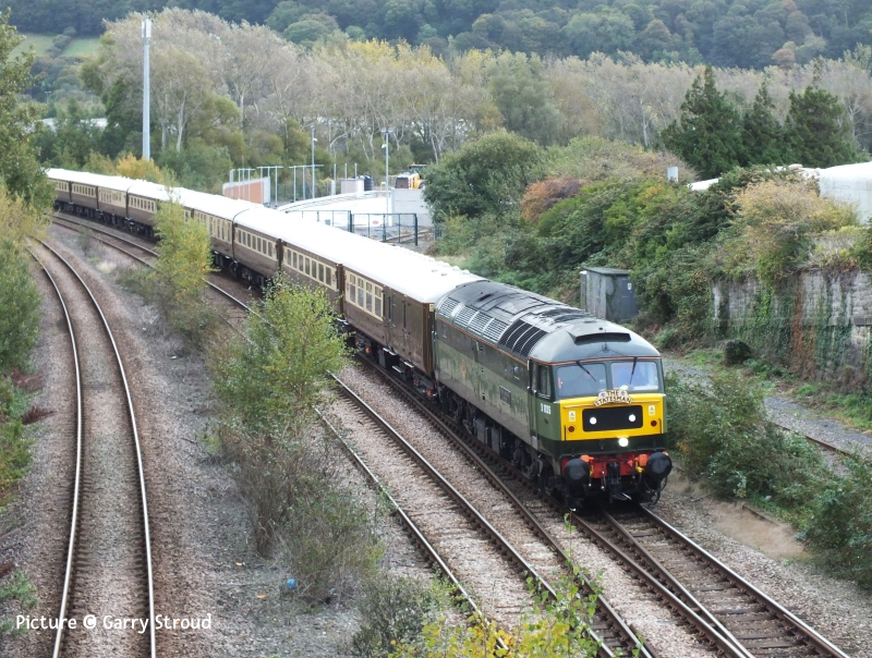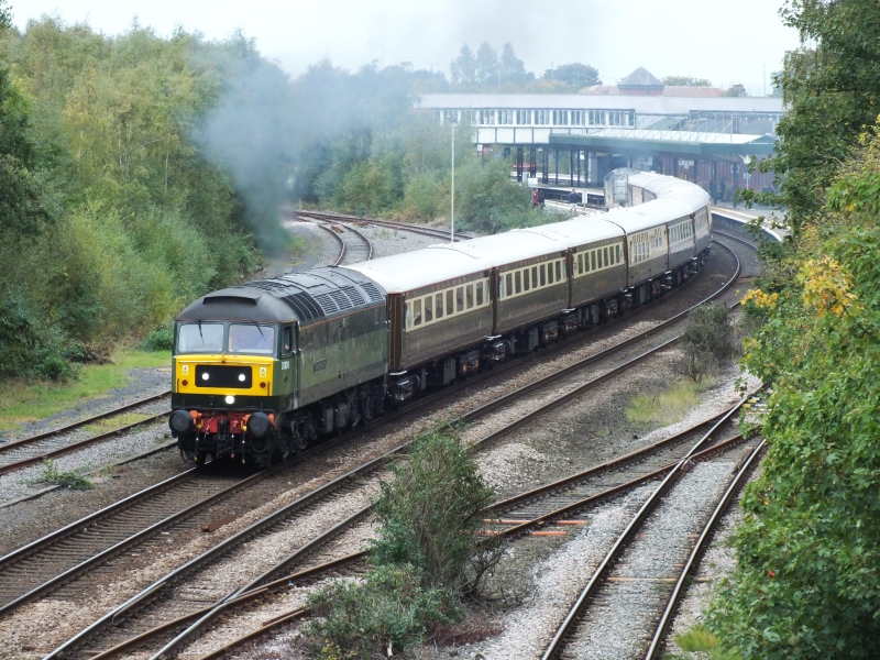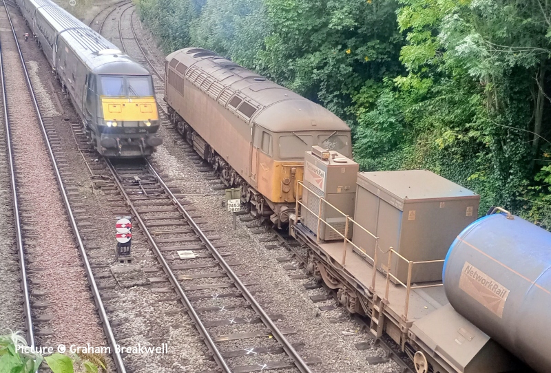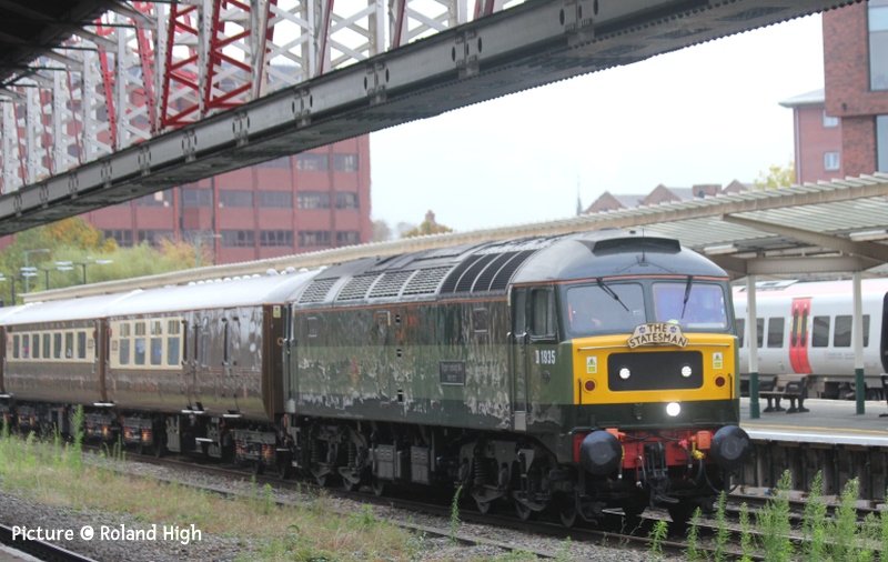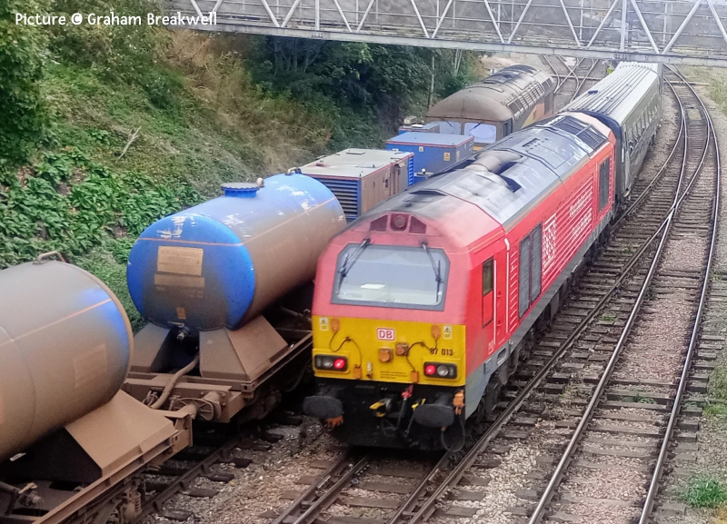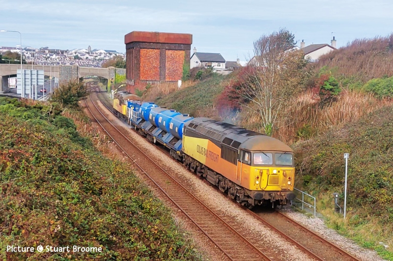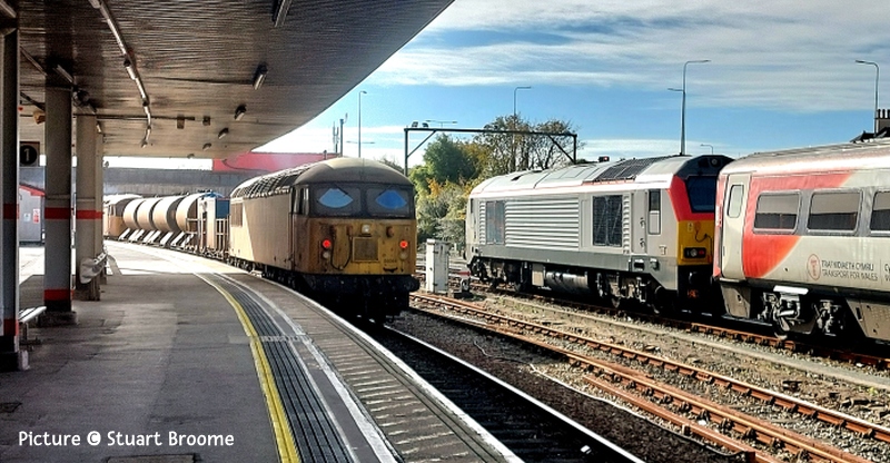 ![]() Holyhead on 6 October: 56 090 and 67 014 rest between duties. Picture by Stuart Broome. Aplogies for the late arrival of this update, 'technical issues' Charlie The Statesman from Durham![]() 8 October's Statesman Rail 'Snowdonia Statesman' from Durham to Blaenau Ffestiniog 1Z53 Durham to Blaenau Ffestiniog passing Chester some 10 minutes early. D1935 (48 805) Roger Hoskins M.A. eases 1Z53 through the centre road (Roland High). ![]() Arriving at Llandudno Junction. Class 47LSL loco 1935 (47 805) (Garry Stroud). ![]() At the other end, 1924 (47 810), takes the route to Blaenau. (Garry Stroud). ![]() Back at Llandudno Junction, 47 810 awaits departure to Durham (Logan Humphreys). Mk 3s to Blaenau - solvedWe have had several emails about the apparent ban on Mk3 coaches from the Conwy Valley line. Ths situation is that any vehicle could run to 'banned' routes if special permission is obtained. And recently a document has been issued giving full permission for Mk3s to run on Cambrian, Conwy Valley among others' This changes have not yet reached the Sectional Appendix, but it is in other internal documents. ![]() Some notable occasions for permission are a number of HST which have Mk3 Coaches, and a unique run of a 'WAG' set to Blaenau on 28 October 2013, as seen above; the loco was 67 001. Hugh Napier was on the Ffestiniog line. The occasion was a Community Rail day at Blaenau. Picture by Dave Sallery. The loco, 67 001 hs not run for some time. It is one of the locos which DB have offered for sale; sister loco 67 003 has been scrapped, but we can't find out the status of 001 - does anyone know? Conwy Valley ConsulationTfW have a plan for the December 2026 timetable, to make changes to the Conwy Valley line service to improve its usefulness. Full information here. Betws Y Coed Railway Station, Station Road, Betws Y Coed, Conwy, LL23 0AE Thursday 23 October 10.00 12.00 Ffestiniog and Welsh Highland Railway, Cromwell Street, Blaenau Ffestiniog, LL41 3HG Thursday 23 October 1.00 - 3.00 Llanrwst Library, Glasdir, Plas Yn Dre, Llanrwst, Ll26 0DF Friday 24 October 10.00 - 1.00 Llandudno Library, 48 Mostyn Street, Llandudno, Ll30 2RP Monday 3 November 10.00 - 1.00 Freight Scenes![]() Seen at Crewe on 24 September by Richard Snook: 68 007 named 30 Years of DRS, sporting a new one-off livery passing through from Carlisle to the DRS depot at Crewe. Richard notes: '30 years of the DRS - it doesn't seem that long ago that the company started. The 68s were built in Spain between 2012 and 2016'. ... ![]() ... and later, another a new livery appeared, on 66 791 which passed through with 4H61 Small Heath - Hindlow empty stone JNA box wagons. 66 791 was given a new green livery and named Settle & Carlisle 150, Celebrating 150 years of freight over the Settle and Carlisle. The naming event was held at Horton Quarry near Horton-in-Ribblesdale, owned by Heidelberg Materials whose livery is applied to the loco. The quarry was connected to the main line earlier this year after many years. ![]() At Shrewsbury on Thursday 17 October, a very clean 66 728 Institution of Railway Operators heading 6M42 Avonmouth to Penyffordd (John Oates). ![]() 66 751 Inspiration Delivered passes Penmaemawr station with the partly loaded 6Z87 11:56 Penmaenmawr Quarry to Brindle Heath Eurofreight. The passenger train is 158 822 and 158 829 working the 07:08 Birmingham - Holyhead which this day started at Wolverhampton due to a fatality between there and Birmingham. ![]() Passing Dwygyfylchgi (Logan Humphreys). The route taken was Chester - Warrington - Preston (reverse)- Bolton - Brindle Heath. ![]() Llandudno Junction Garry Stroud, who notes 'Could this be a new GBRf flow from the quarry, only time will tell.' Shunting at Coleham - by Graham BreakwellThe Rail Head Treatment Train returned to Coleham depot on the afternoon of 10 October top-and tailed by 56 090 and 56 302 whereupon a lengthy and complicated manoeuvre took place to hand over to 97 302 and 97 304 for the Cambrian line's signalling system. ![]() 1. 56 090 on the left in the Sutton Bridge Junction headshunt with the tanks and 56 302 moving running past to get into position on the rear. ![]() Once out of the way 1W61, the 14:50 from Cardiff to Manchester passed by ... ![]() ... 67 013 providing the power. ![]() The 56s then moved the tanks into the depot, past the powered up 97’s ready for the next moves to get one on the front and the other on the tail for the run to Machynlleth. Left to right 56 090, 97 302, 97 304, 56302 and 97 303. An RHTT selection![]() Bangor, 14 October (Ken Robinson). ![]() Chester Locks, 8 October (Logan Humphries), ![]() Holyhead, 6 October (Stuart Broome) From Dave Sallery's archive![]() 20 218 and 20 099 with the return working of the Derby - Llandudno train enters Rhyl, 4 July 1989. ![]() 37 422 Robert F. Fairlie Locomotive Engineer1831-1885 in the process of running round a Crewe - Bangor train in readiness for its return to Crewe, 13 June 1995. ![]() 66 951 with an up ballast passes the since replaced semaphore signals at Rhyl, 28 June 2005. ![]() 90 020 Collingwood at London Liverpool Street with an arrival from Norwich. The class 90s on these services have since been replaced by a fleet of 10 class 745 EMU's built by Stadler. Looking back: Steam in 1970 - by David Pool![]() I was looking through my list of 1970 slides and noticed one taken on the KWVR which was labelled “saddle tank” with no other identification - at that time I would have been primarily interested in ex BR locomotives. I found the slide and scanned it, and it looked like a Manning Wardle, but the cab was different. Searching the website for Preserved Industrial 0-4-0ST locomotives built in the 19th century (preservedbritishsteamlocomotives.com) it listed Hudswell Clarke No.402, built in 1893 and later named Lord Mayor. I found an image of this locomotive, and it was the one I had seen at Haworth on 1 March 1970. It had been built for use by contractors, and start