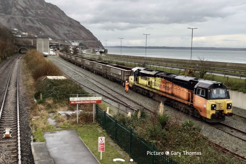![]() On 13 November at Conwy 3S71 56 302 and 56 078 at 10:08 with 21:13 Coleham to via Holyhead to Coleham Rail Head Treatment Train. Picture by John Wilkinson. Time for changeFor various reasons, including lack of interest in the Coast trains, neglect of other websites and projects, and slowing down of my old brain, as from this issue the updates will be fortnightly. This also gives time for myself and hopefully other contributors to write more text to go with the pictures. I hope people understand my reasons; I had considered closing down altogether, but we'll try this. The next update will be on 5 January. On the subject of photographs, back in the 90s every took pictures with digital cameras, and knew how to edit using a computer how to easily alter the file name to the format which is essential for my system. In particular, the filename should begin with your initials e.g. ch so the pictures are together when I upload them. Today many use a phone camera, but it would be a big help if you could read the contributions page. All the best for Christmas - Charlie Newsreel![]() Colas Rail's 70 812 made a couple of trips to Penmaenmawr on Thursday 18 and Friday 19 December. On the Thursday it arrived quite late so only 6 wagons were loaded. It left Penmaenmawr with just the loaded wagons. The following day it returned with these now empty wagons and left Penmaenmawr pretty much on time with a fully loaded train. ![]() TfW's 67 010 also ran an additional Holyhead to Crewe return service on 20 December as a 'crowd buster'. It was good to see the initiative being taken. Interestingly, a coach ran from Bangor to Chester at pretty much the same time. ![]() On 17 December DRS ran one of their twice-yearly 68 009 to keep the path, and insure that the equipment at Valley is available. 68 009 is seen leading the outbound flasks past Conwy as 6D43 09:50 Crewe Coal Yard to Valley Nuclear Electric. 68 005 was on the rear. In other news: Ivor Bufton reports that ex-TfW unit 175 001 has become the first Class 175 to enter revenue earning service with GWR today on 15 December, working: 2C26 13:40 Plymouth to Penzance 2P21 15:52 Penzance to Plymouth Shrewsbury oddity - report by John OatesHere’s something I’ve not seen before on my occasional visits to Shrewsbury: ![]() Saturday 6 December, 1D12 Birmingham International to Holyhead / Aberystwyth was a platform change into platform 3. Formed of 158 819 & 158 823, the train was split with 823 then being signalled using rarely-used signal SBJ99 southwards. Above, the now 1J09 10:33 to Aberystwyth approaching signal SBJ99 ... ![]() ... and then disappearing around the corner. It was a very busy morning at Shrewsbury with not only the beginning of Christmas shopping, but also Wrexham playing away at Preston. 1D12, formed of the aforementioned 158 819 left Shrewsbury 11 minutes due to problems in the Birmingham area, but then 16 late from Ruabon and 21 late from Wrexham General (after 7 minutes loading passengers – or not ….). The newly introduced doubling of the service between Wrexham and Chester should prove very successful. We hope all the fans made it to Preston on time! Riding the loco-hauled - by Charlie Hulme