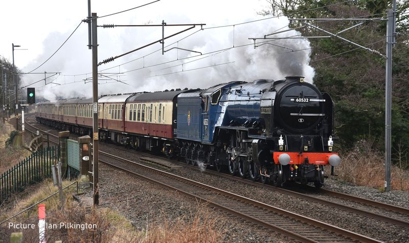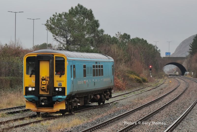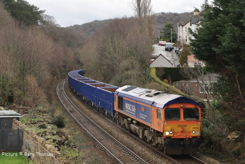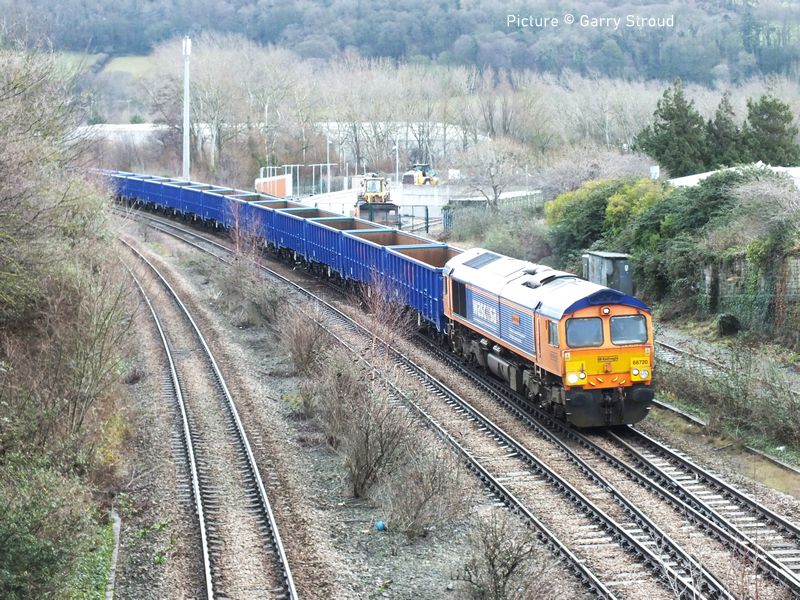 ![]() 60532 Blue Peter at Bay Horse, north of Preston, with the Crewe-Carlisle “Cumbrian Mountaineer” on Thursday 12 February. Picture by Ian Pilkington. Traffic news![]() 153 311, now operated by Network Rail as a Video Inspection Unit (VIU1) visited the North Wales Coast on 5 February. It is seen above during its recess in Rhyl Engineers' Sidings on 5 February Its was itinerary was: Working 2Q54 06:08 Lichfield Trent Valley C E sidings to Chester via a recess in Rhyl C E Sidings then later working 2Q55 16:35 Chester to Chester Middle Yard via Llandudno ![]() Unusally, on 6 Febraury it made a visit to the Quarry Sidings at Penmaenmawr (Gary Thomas). ![]() Seen by Bob Greenhalgh passing Morrisons, Saltney on its first return run. Network Rail has four of these units at present: 153 311, 153 376, 153 379, 153 385. Their job of the 'video inspection unit' is to monitor the condition of the track, especially in regard to points and crossings. There's a large number of 153s now stored out of service, but - so far - few heritage railways have seen to be interested. ![]() Almost 20 years previous the 153 in Regional Railways livery is seen coupled to a Class 158 heading west through Prestatyn on 29th July 2006 (Ivor Bufton). A new flow of Granite from Penmaenmawr began on Monday 9 February, it is reported as ‘a substantial volume of granite’ is to be moved from Penmaenmawr to Quainton Railhead. The diagram is over two days and in this first week ran three times. The diagram so far has been as follows 4P46 06:58 Small Heath Caledonia Yard to Penmaenmawr Quarry 6P49 16:53 Penmaenmawr Quarry Gbrf to Wembley Receptions 1-7 6A67 08:32 Wembley Receptions 1-7 to Quainton Railhead 4P45 15:09 Quainton Railhead to Small Heath Caledonia Yard ![]() 66 308 Signalman Willie Taylor leads 4P46 06:58 Small Heath Caledonia Yard to Penmaenmawr Quarry through Rhyl on a damp and dismal 11 February with 66 720 Wascosa on the rear. ![]() Garry Stroud captured the train heading for Penmaenmawr passing Llandudno Junction with 66 720 leading ... ![]() ... and 66 308 on the rear. GBRf ran three trips from Small Heath Caledonia Yard to Penmaenmawr Quarry on Monday 9 February, Wednesday 11 February and Friday 13 February. Unusually this train was top-and-tailed by 66's, though this did make the loading process quicker at Penmaenmawr. I attach photos of the first two trains, on Monday with 667 20 leading to Penmaenmawr and 66 308 returning the train to Wembley Yard. The wagons looked brand new. 66 720 and 66 308 ran the two following trains (Garry Stroud). ![]() Cadnant Park, 9 February (Gary Thomas). Note about the name of 66 308: Forty years ago, at 05:30 on Tuesday 1 May 1984, Bill (Willie) Taylor, a signaller at Carlisle Power Signal Box realised that 4S55, a Liverpool (Garston) to Glasgow (Gushetfaulds), a freightliner train had become divided south of Carlisle and both portions of the train were rolling downhill towards Carlisle Citadel station. It was carrying dangerous, Using all his knowledge and experience, Bill calmly switched the uncoupled wagons onto the empty Carlisle Goods Avoiding Line, avoiding disaster. There is an interesting article about the incident in Railstaff magazine. 70 817 (Colas) ran from Bradwell Sidings near Longport to Penmaenmawr and return on Friday 6 February. DC Rail's ran 60 055 from Wembley to Penmaenmawr on Saturday 7 February then back loaded to Wembley on Sunday 8 February. DCRail's 60 028 ran another weekend trip to Penmaenmawr and back to Wembley on 14/15 February but left with only just over 5 wagons full due to issues with the loading equipment. This has happened quite frequently recently. The flows from Llandudno Junction to Earles sidings, and traffic from the loading point at Llandudno Junction seem to have gone to sleep at present. Dyserth stone: a question - by Peter MounceyI lived in Prestatyn in the 1960s and used to regularly watch the daily train leave or arrive back from Dyserth, in those days usually hauled by Rhyl 4F 44367; 43981 or 3F 43618. After shunting the train of limestone it then left Prestatyn in the Chester direction. As I understand it, the limestone was taken to the big steel works at Shotton (and previously to Mostyn Iron Works until that closed). My question is one I should have asked