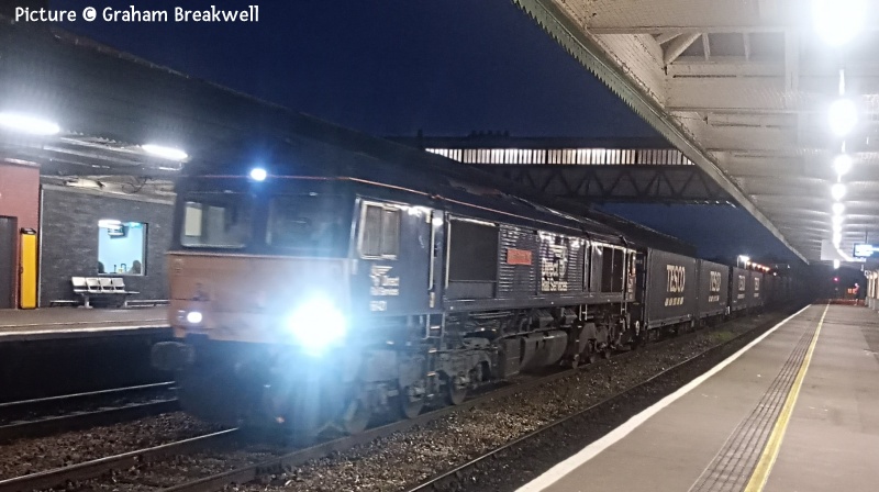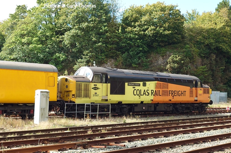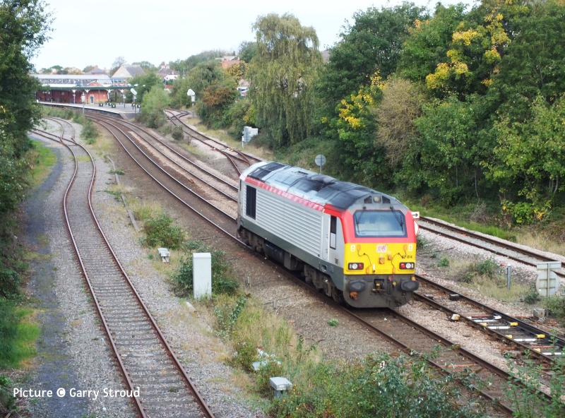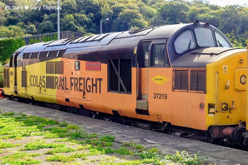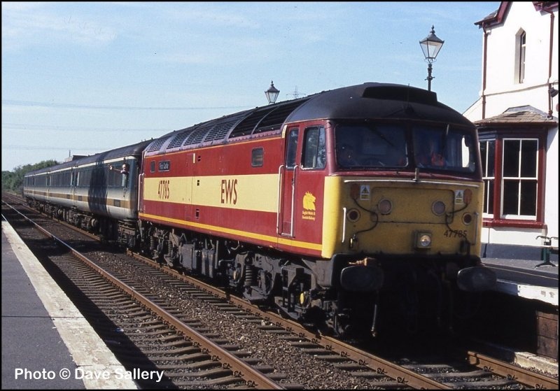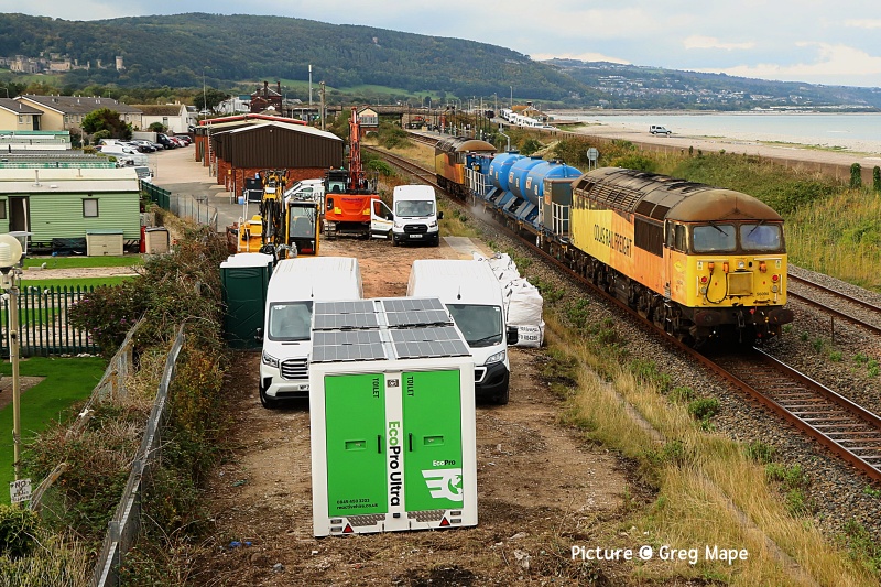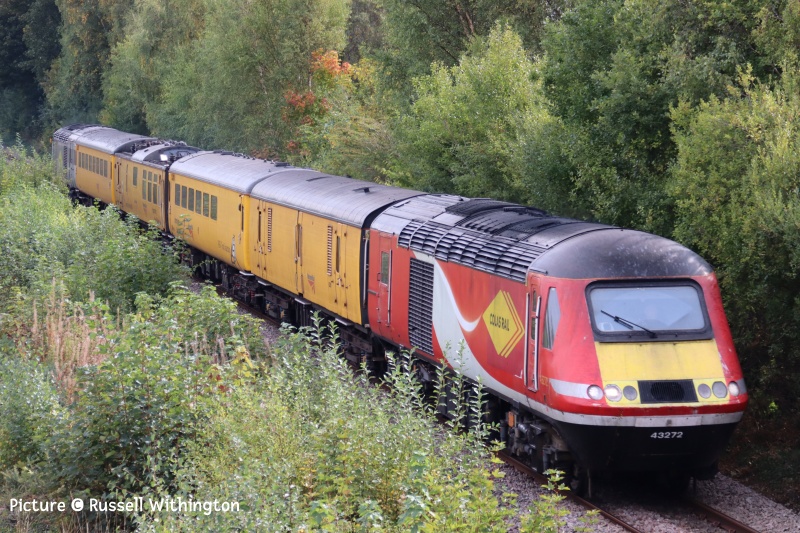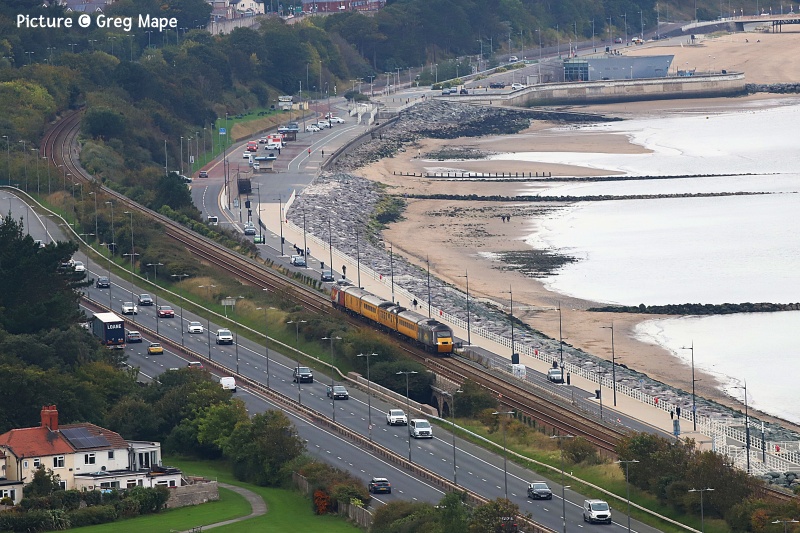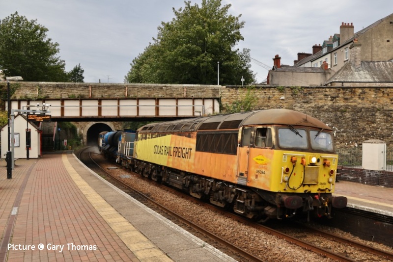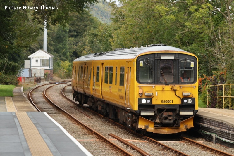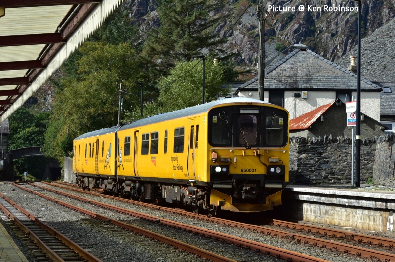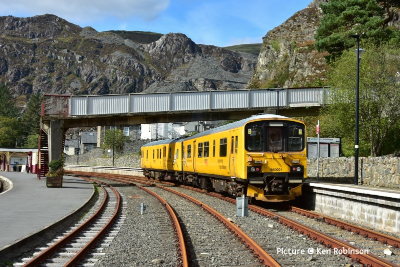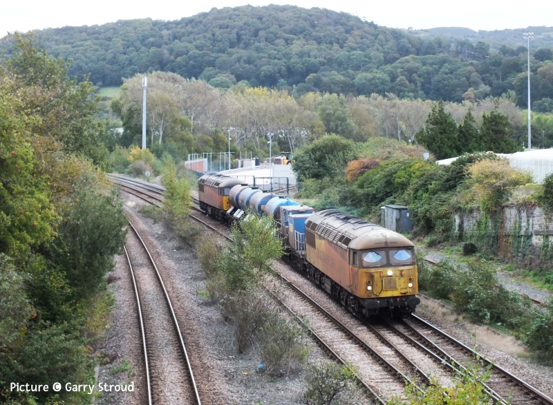 ![]() The classic view at Bangor with a unique train on 23 September; Picture by Logan Humphreys. Much more 'yellow' to be seen below. Assortment![]() The latest Class 197 to make a test run along the coast, Working the 5Q71 return Holyhead to Crewe, 197 039 passes Conwy station on 27 September (Garry Stroud). ![]() Garry Stroud writes: ' I rather like this shot taken on 6 October with 56 090 with 56 094 on the rear approaches Llandudno Junction with the RHTT to Holyhead. With windscreen wipers having been used over all the grime, 56 090 looks as if it has two eyes, together with the front grill making the front of the loco reminiscent of a face.' ![]() Also on 6 October 67 014 approaching Llandudno Junction, with the 0T14 Crewe carriage sidings to Holyhead light engine move. ![]() Network Rail’s Visual Inspection Unit No. 153 311 passed through Shrewsbury on 5 October on its way to Eastleigh East Yard with 2Q10, the 08:25 from Derby RTC. Seen here by Graham Breakwell passing Shrewsbury Golf Course. A second VIU ran in the opposite direction as 2Q15, the 13:12 from Eastleigh, reversing in Shrewsbury in the evening. ![]() The Wentloog (Freightliners) to Daventry DRS (Tesco) was diverted at the weekend 4-5 October to run via Shrewsbury and Crewe. 66 421 Gresty Bridge TMD is seen here passing through Shrewsbury on the Down Main Line with 34 Tesco containers – that’s a lot of lorries removed from the roads! (Graham Breakwell) ![]() Jim Ikin writes: 'I know its not North Wales but whilst in the North East at Hope Town Darlington we saw the arrival of Sir Nigel Gresley and support coach on 23 September'. Sprinter's cousin![]() Blaenau Ffestiniog was visited by NR's Track Recording Unit on Tuesday 23 September. The unit, 950 001, ran as the Chester Middle Yard - Chester Middle Yard, via Llandudno Junction, Blaenau Ffestiniog, Llandudno Junction, Llandudno, Llandudno Junction, Bangor, and return to Chester.This unit has never been a very frequent visitor in North Wales, coming down maybe twice per year. It is said understand that Network Rail plan to withdraw it soon. (Gary Thomas). ![]() Arriving at Blaenau Ffestiniog... ![]() ... and then preparing for departure in the sunshine! (Ken Robinson) ![]() After visiting both Llandudno and Blaenau Ffestiniog, 950 001, (cars 999601, 999600) stands at Llandudno Junction before setting off for Bangor (Garry Stroud) ![]() Bangor (Logan Humphreys) HST monitoring![]() 43 303 and 43 272 pass Bangor on 2 October working 1Q18 Derby R.T.C - Crewe, a measurement train with Plain Line Pattern Recognition and Overhead Line Inspection equipment (Logan Humphreys). ![]() Bagillt (Russell Withington). ![]() Passing Old Colwyn (Greg Mape). Work is in progress, including repair and raising the promenade to protect it from storms. Ultrasonic vintage![]() Colas Rail's 37 219 and 37 057 in the sidings at Bangor. Having first run to Holyhead then back to Bangor they were stabled during the day on Wednesday 24 September, as the Ultrasonic Test Unit runs at night. ![]() Barbara Arbon, who died in 2020, was a member of Colas staff. The small plaque reads in 'In Loving Memory of Auntie Barbara from the Infrastructure Monitoring Team'. 37 057 is one of the oldest locos active on the National system. It was delivered by English Electric to British Railways on 5 October 1962. Autumn is hereThe first railhead treatment train of the 2025 season was expected to start on 1 October, but it was cancelled. A "shakedown" test had run on Saturday 27 September as far as Rhyl as the line west to Llandudno Junction was closed for engineering works. ![]() The first RHTT of the season from Coleham and back via Mid- and North Wales lines, passing Abergele on 2 October, looking clean, we don't think it will stay that way! Locos are 56 090 and 56 094. ![]() Conwy (Gary Thomas). Mark 3 mystery ![]() Our comment about the Mk3 Coaches, such as the rake used by the 'Britannic Explorer' not being allowed on the Conwy Valley has raised some comment. Above is an extract from the current Network Rail 'Sectional Appendix' which gives a clear 'No'. A post in LinkedIn by 'Network Rail North Wales and Borders' tells of 'upgraded infrastructure' on the Cambrian and Heart of Wales to enable Mark 3s. But due to engineering work on the Heart of Wales line, the Conwy Valley becomes involved; it seems that Mk3s have been allowed that far on a few occasions in the past, but only as far as Llanrwst. Has a mk3 train been to Blaenau Ffestiniog? From Dave Sallery's Archive![]() 149 and 167 on Inchicore depot in Dublin, 17 June 1999. All these small GM diesels are now out of traffic due to an influx of new Korean built DMU's and the loss of most freight traffic. ![]() 47 575 City of Hereford leaves Rhyl with train 1D67 11:18 Crewe - Holyhead, a train of Mark 3 coaches, 20 May 1997. ![]() 47 785 Fiona Castle passes through Llanfair PG on 3 September 2003 with former GW stock on the 13:56 Holyhead - Birmingham New Street. Fiona Castle's husband Roy died of lung cancer, and 1997 she organised the 'Tour of Hope' raising funds around the country for the Liverpool lung cancer hospital. 47 786 was named Roy Castle. 47 785 also worked the last train from Trawsfynydd on 17 October 1998. The loco was sold for preservation and was at one time at the Stainmore Railway. However it may have been re-located. It has yet to be restored. ![]() 950 001, Blaenau Ffestiniog, 20 September 2017. This test train found a defect in Blaenau tunnel and was held for some hours while it was repaired. Feedback![]() ![]() Looking back: Steam and Diesels 1969 part 6 - by David Pool![]() On 1 October 1969 the 11:13 from Paddington to Paignton was headed by D1022 Western Sentinel. The train is leaving Newton Abbot, and the signalman has been quick to return the starting signal to danger as the locomotive passes the Signal Box. ![]() The branch lines around Plymouth previously operated by the Southern Region of British Railways were under the contro
